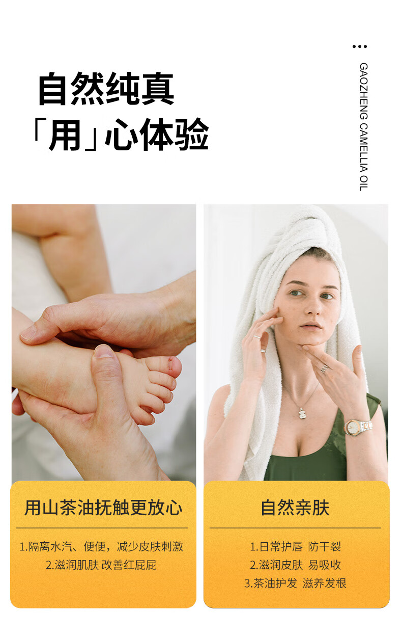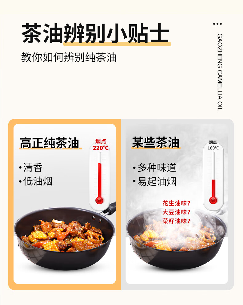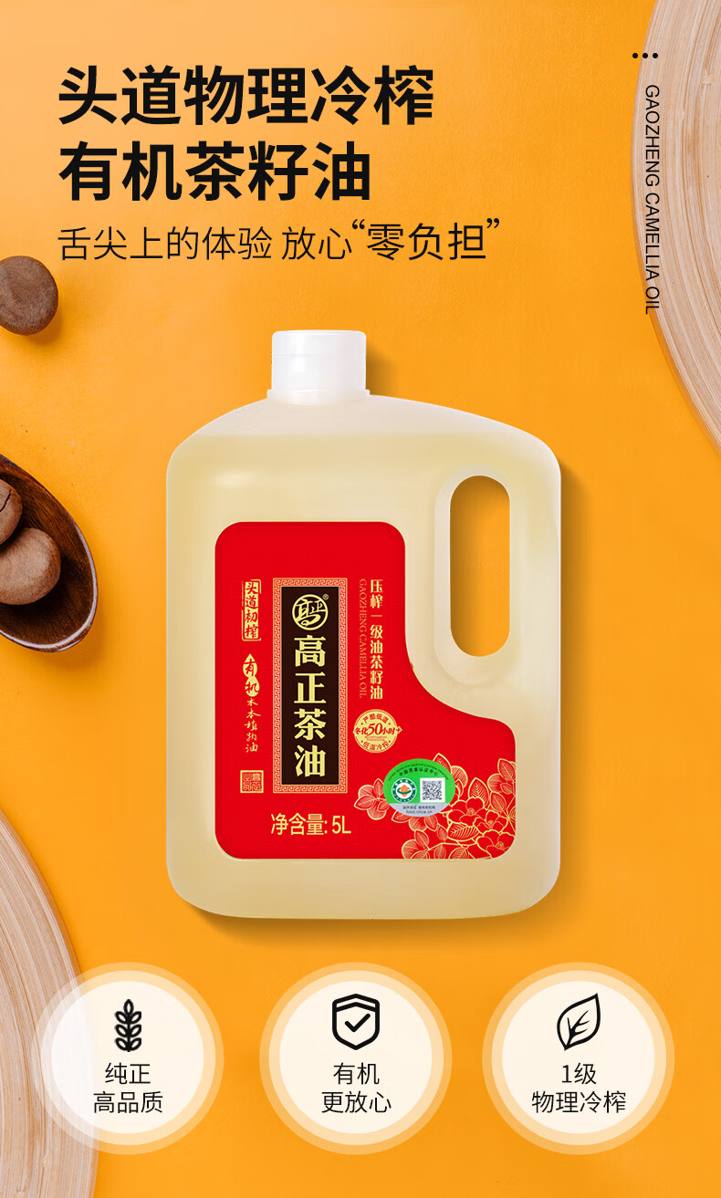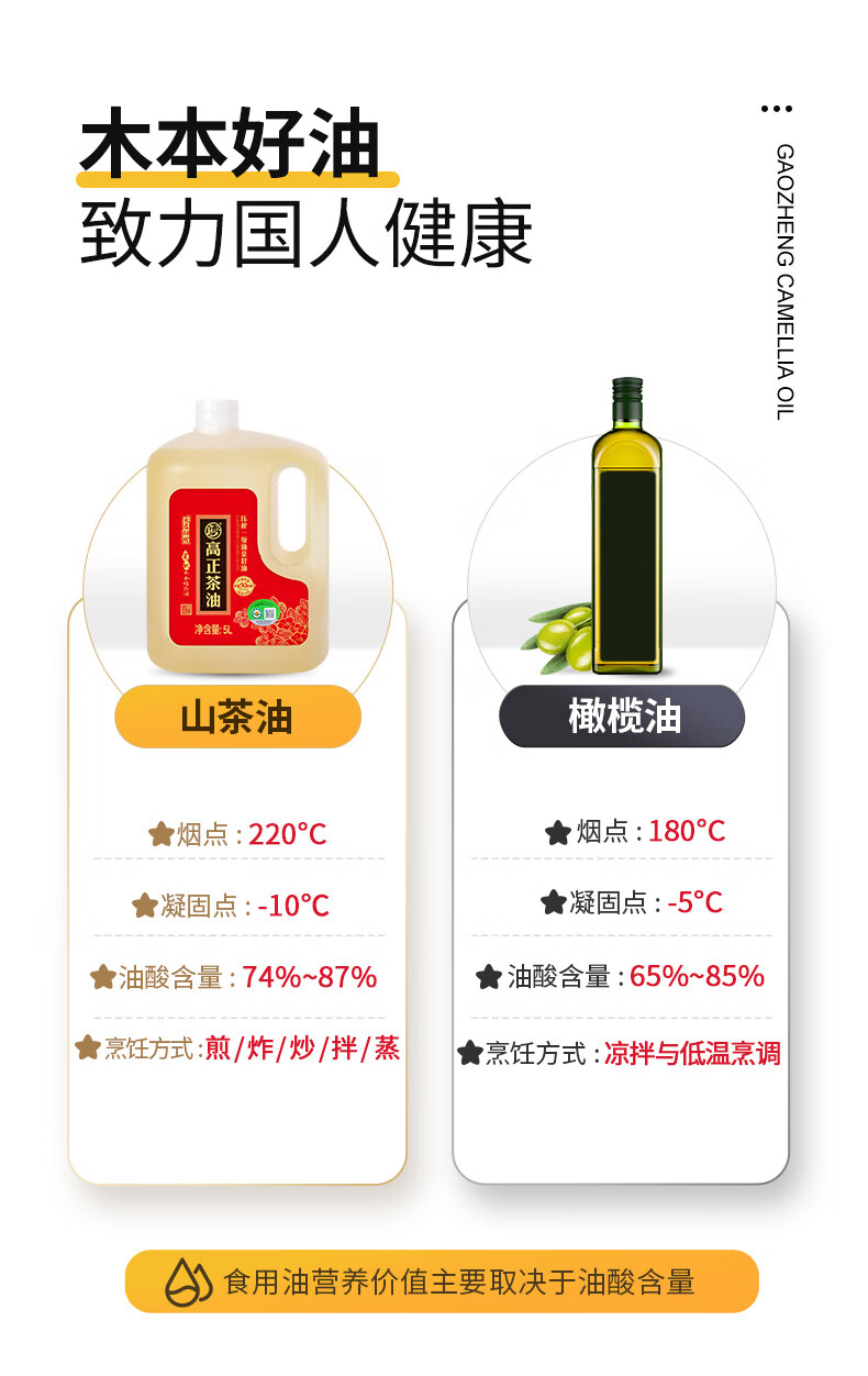 清淡不腻,锁住营养;健康生活 ,选品质茶油;高活烟点,清亮少烟;轻食好油,肠胃无负担