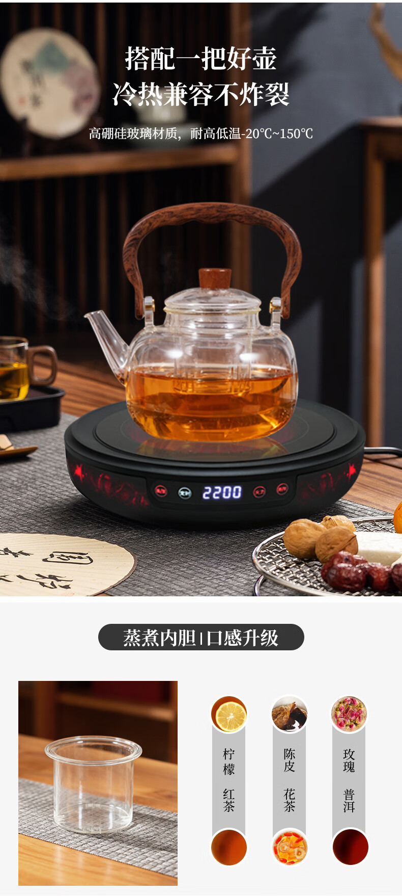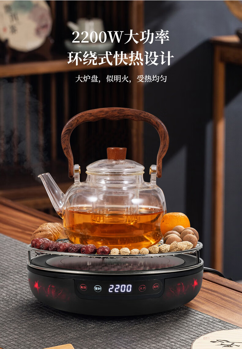 2025新品最大2200瓦功率;22cm大面板;耐高温高鹏玻璃壶