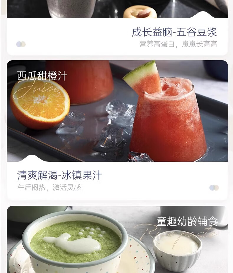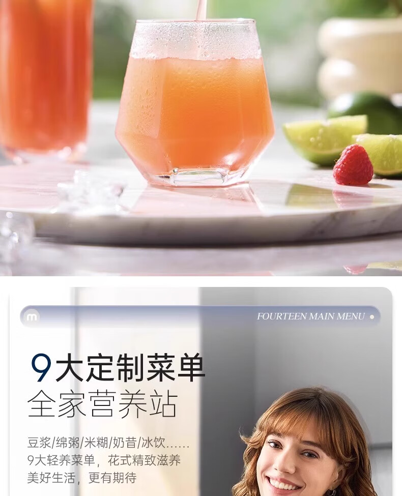 轻便杯体,轻盈不累手;12小时预约,美味如约而至;9大轻养菜单,胜任花式养生
