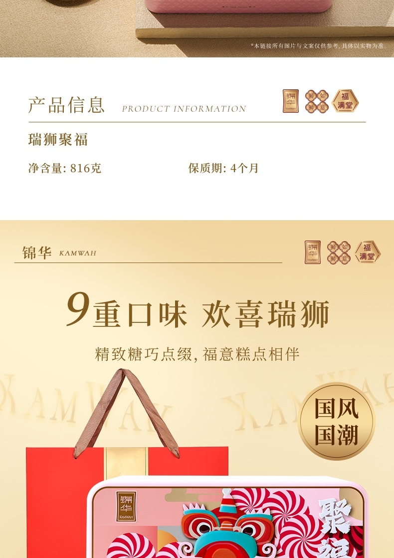 锦华礼 瑞狮聚福糕点零食礼盒816g