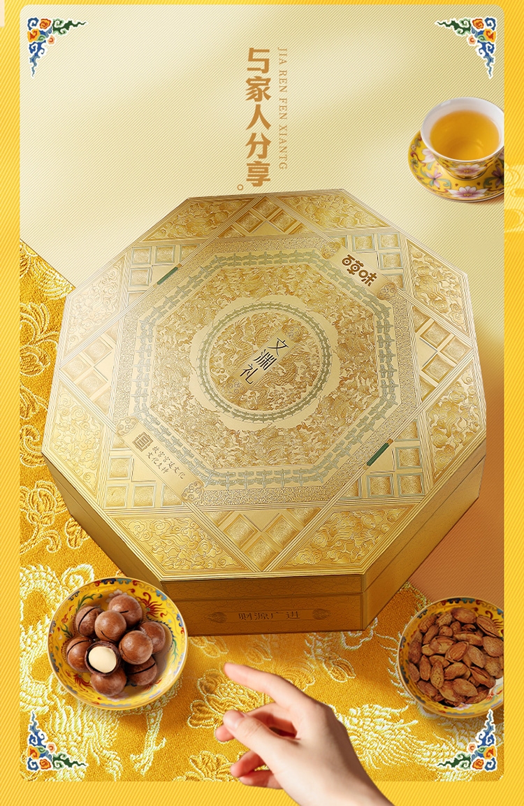 配置:【百草味】开心果 200g(方罐) 【百草味】东北松子 258g(方罐) 【百草味】夏威夷果(奶油味)300g(方罐) 【百草味】碧根果(奶油味) 220g(方罐) 【百草味】巴旦木(奶油味)210g(方罐) 【百草味】纸皮核桃 158g(方罐)