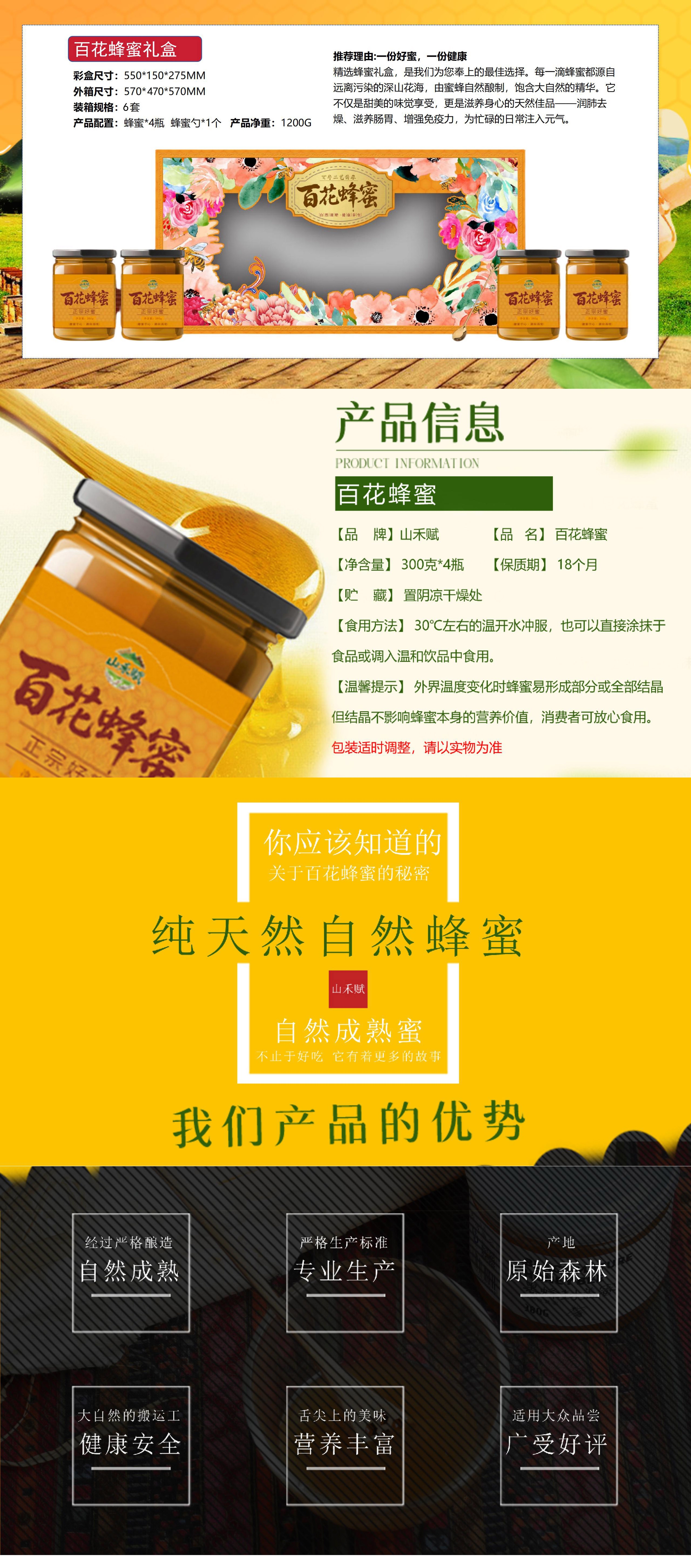 山禾赋 百花蜂蜜礼盒装1200g