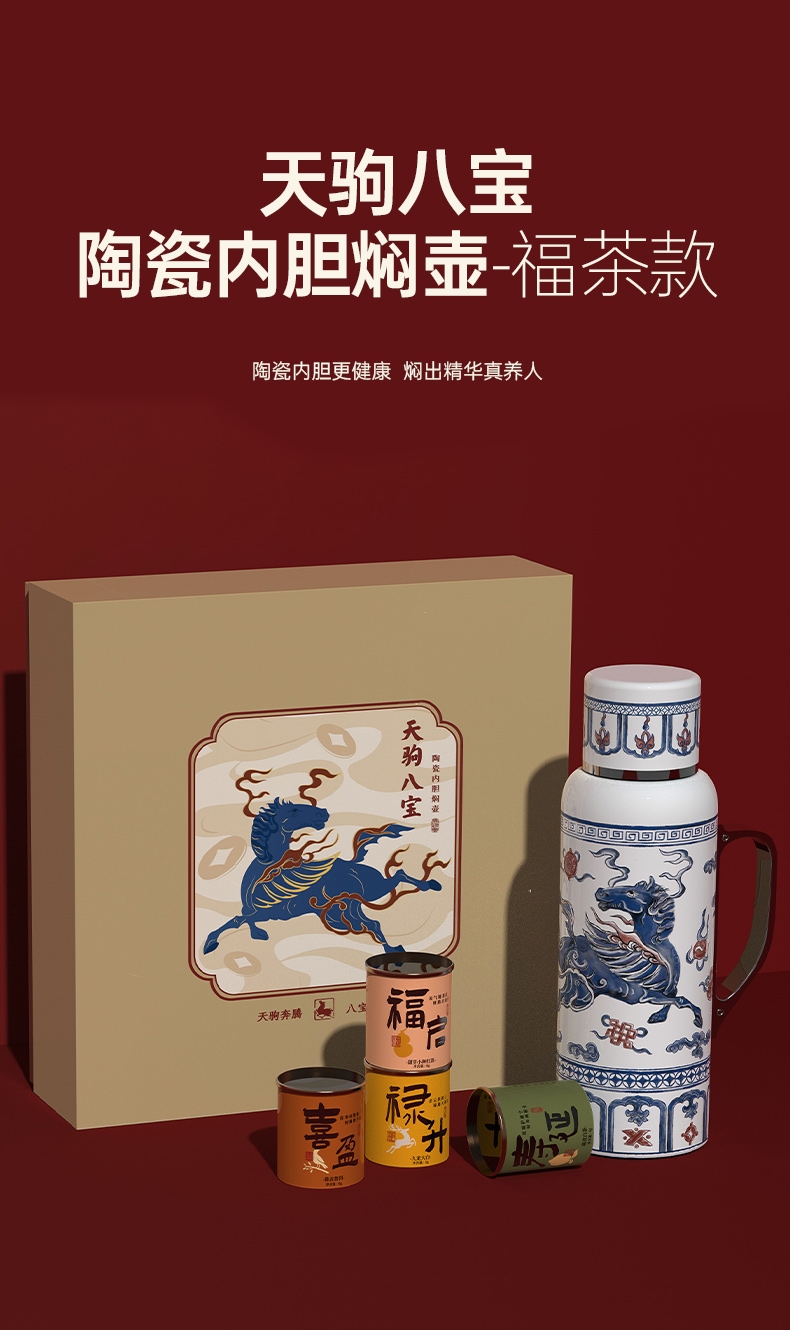 天驹八宝 陶瓷内胆焖壶;陶瓷内胆更健康 焖出精华真养人;马年礼 送体面也送好意头