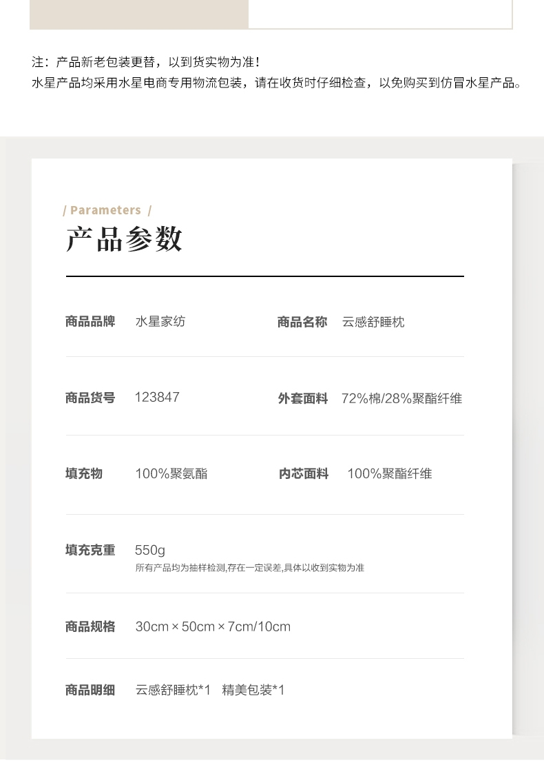 水星家纺 云感舒睡枕单个123847