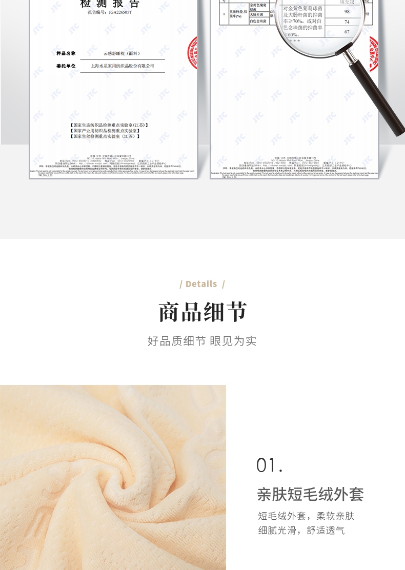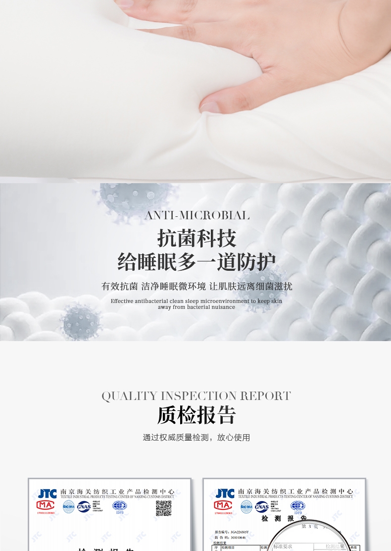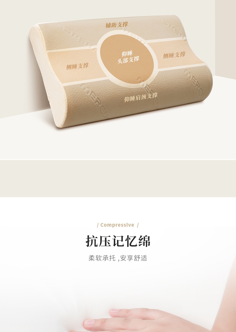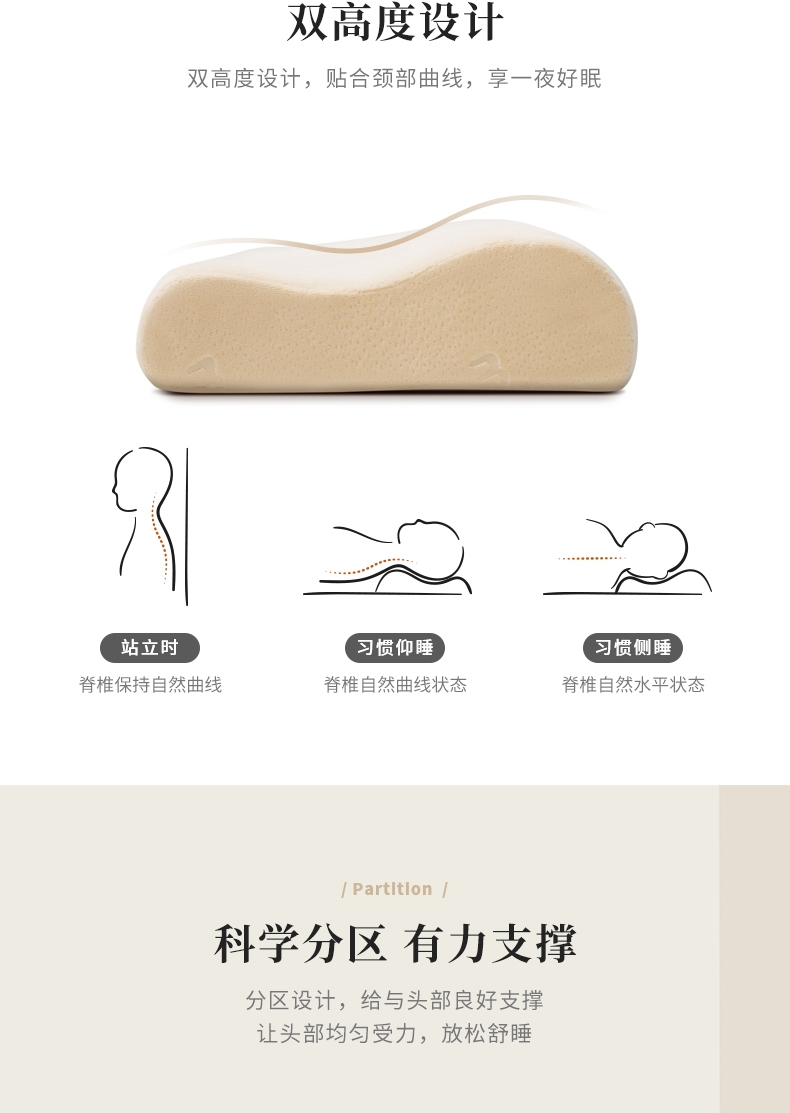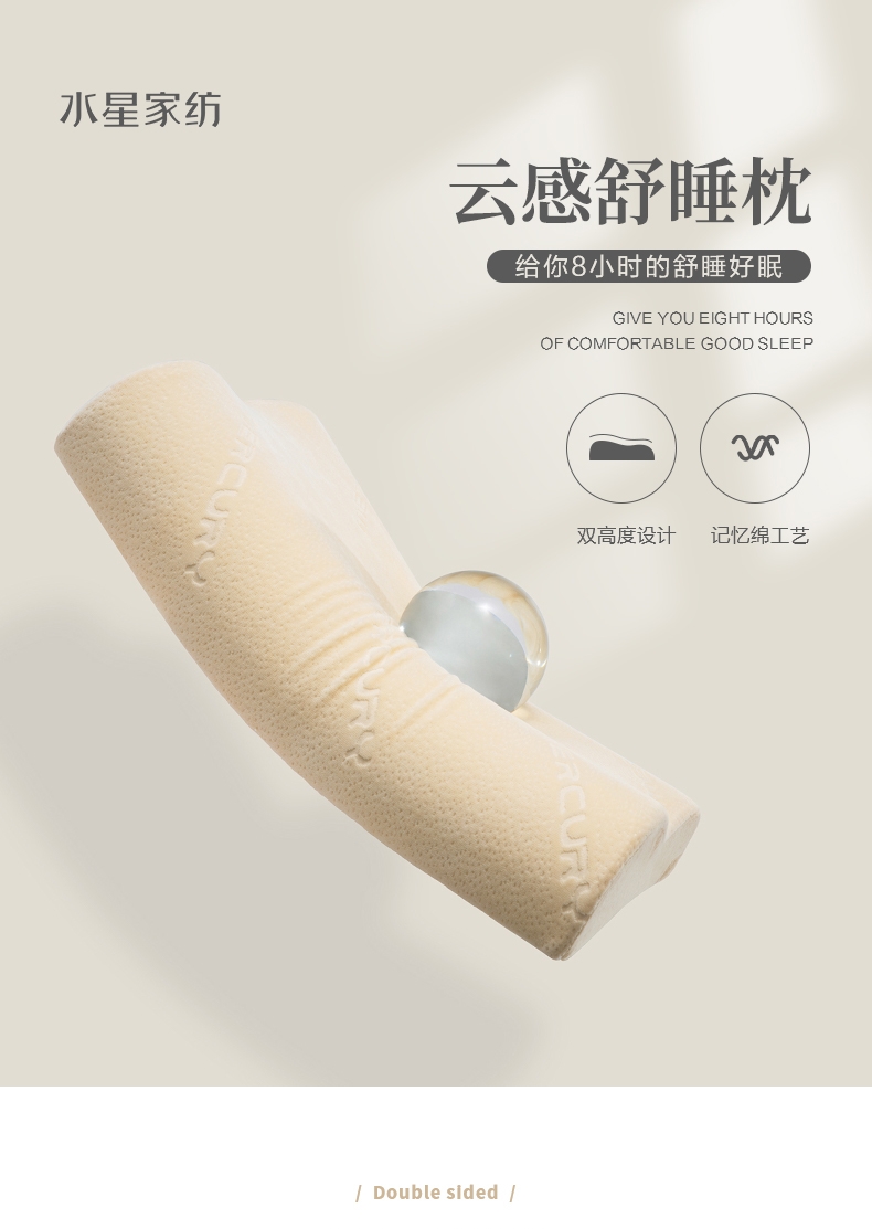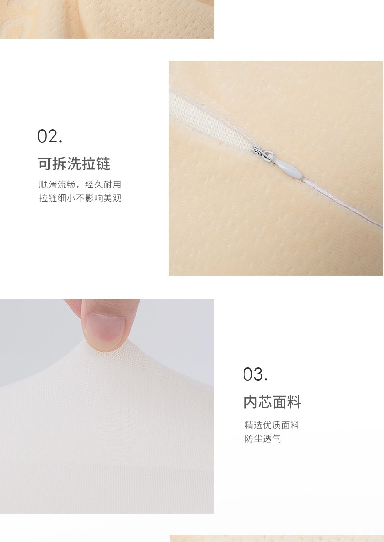 双高度设计,科学仰角 有力支撑;太空记忆绵内芯,全面包裹慢回弹;亲肤天鹅绒枕套,抑菌面料,透气不闷热