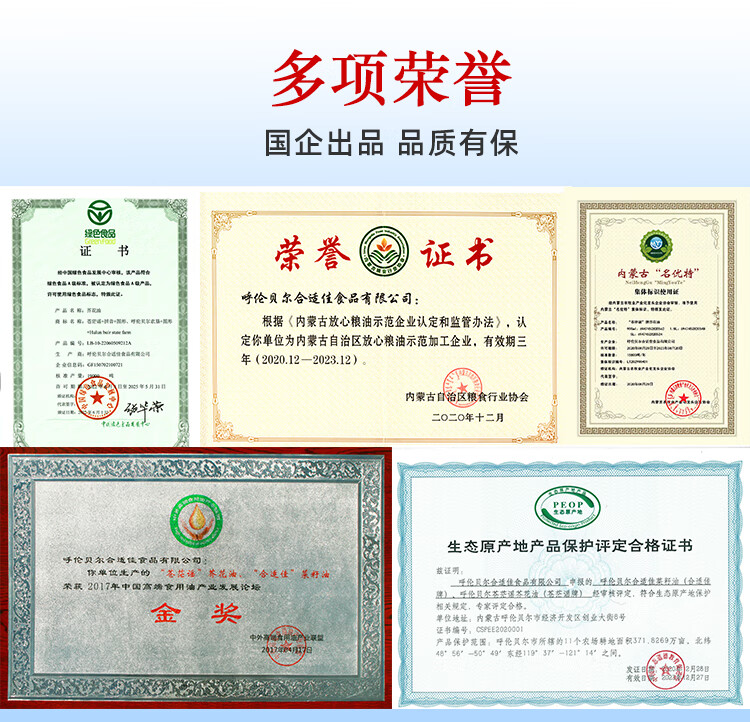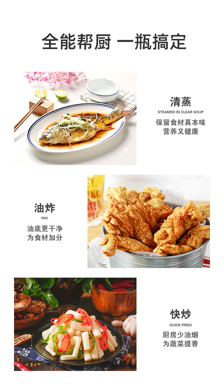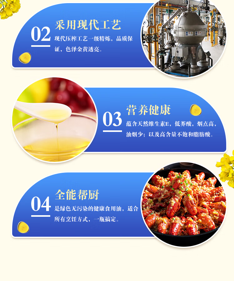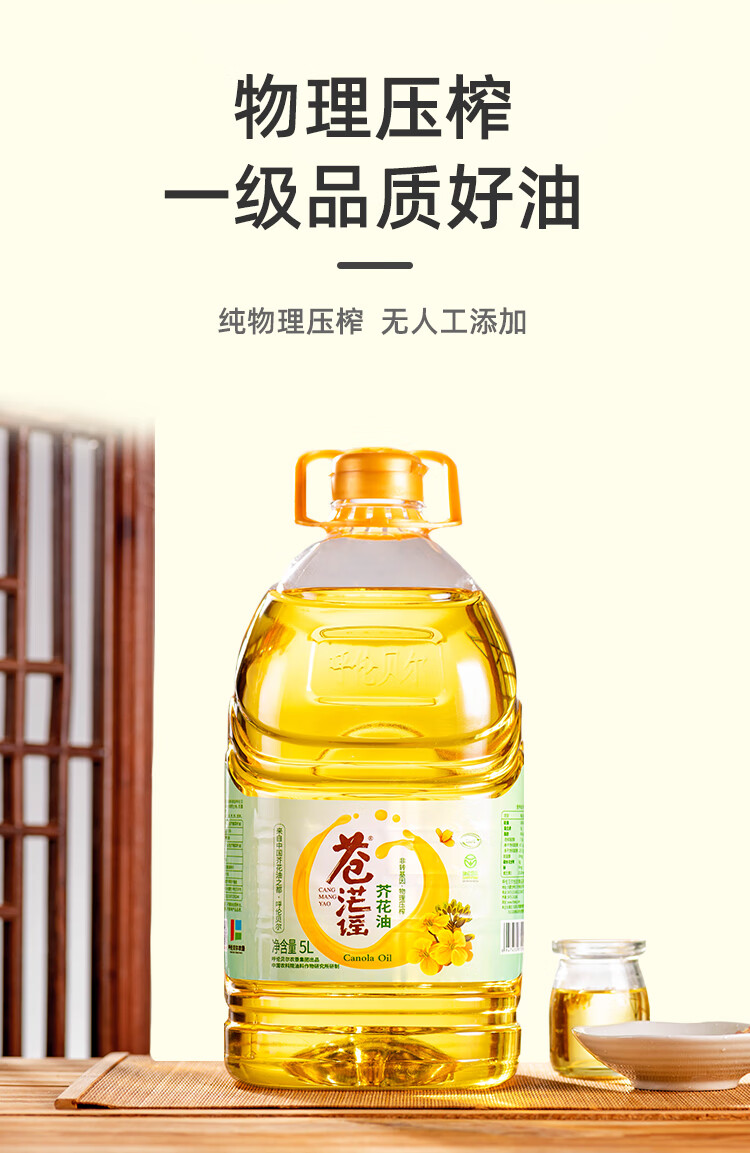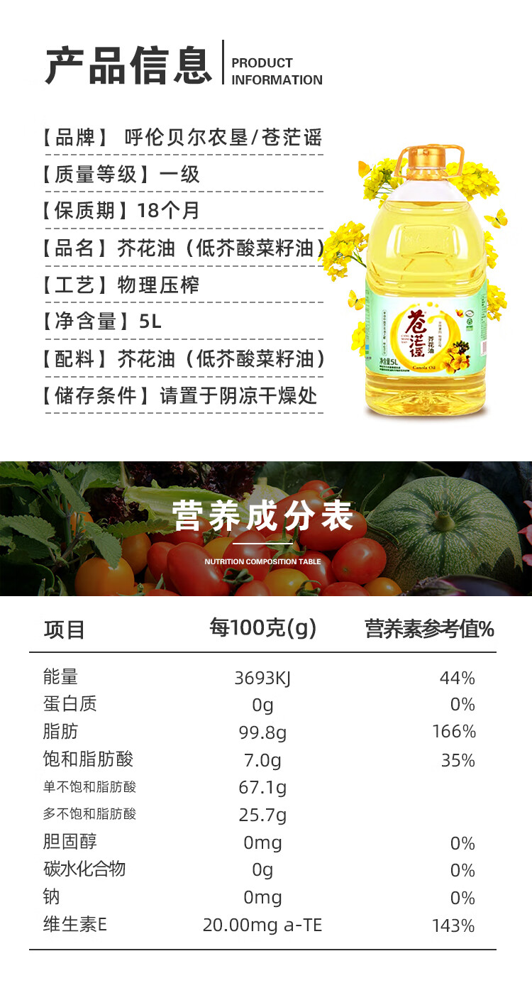 呼伦贝尔农垦 中国芥花油之都;凉拌 清蒸 油炸 快炒 全能帮厨 一瓶搞定;不饱和脂肪酸92.8% 烟点220%