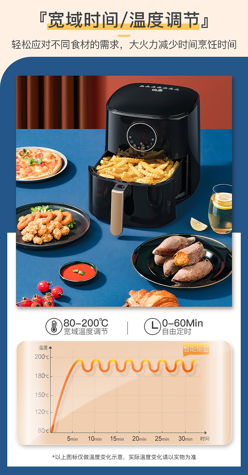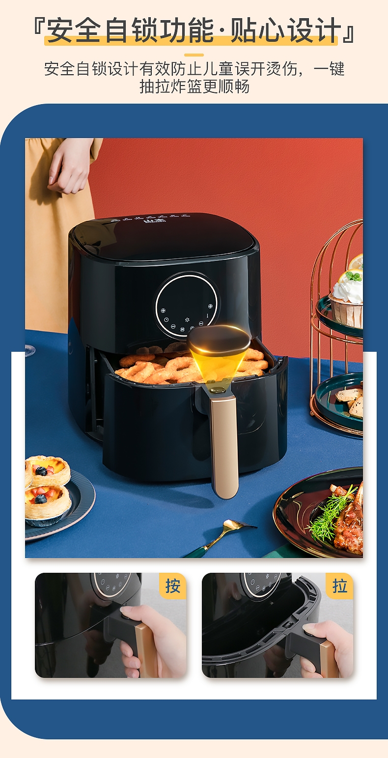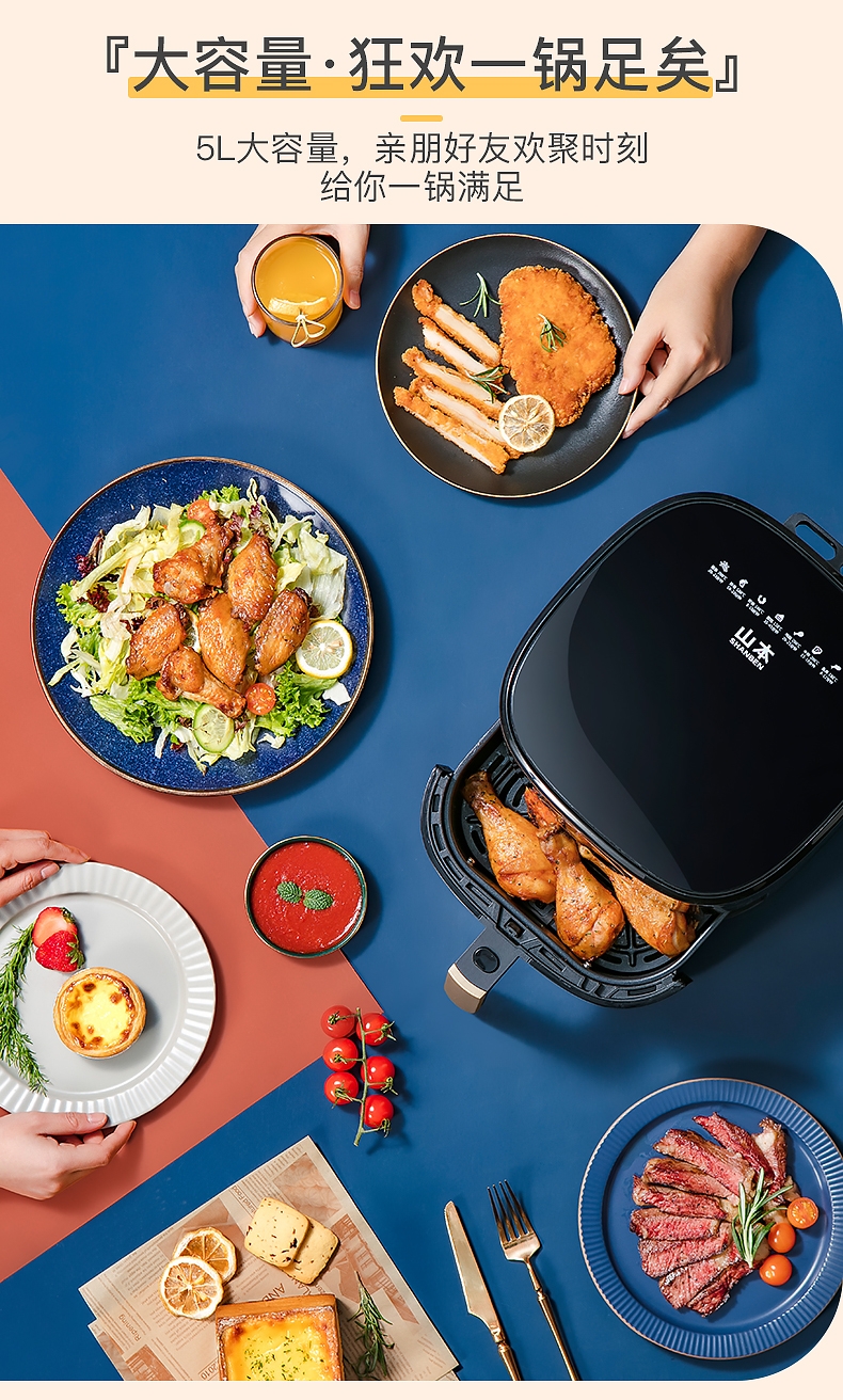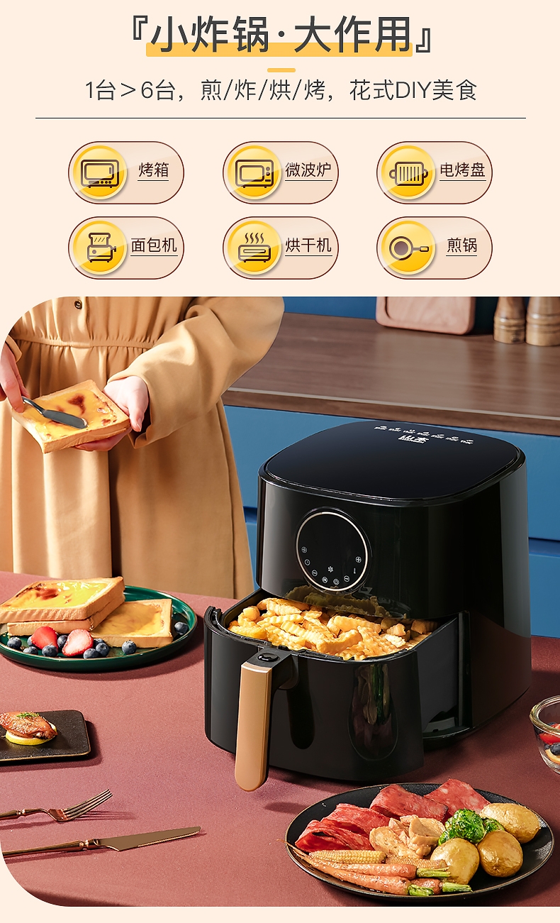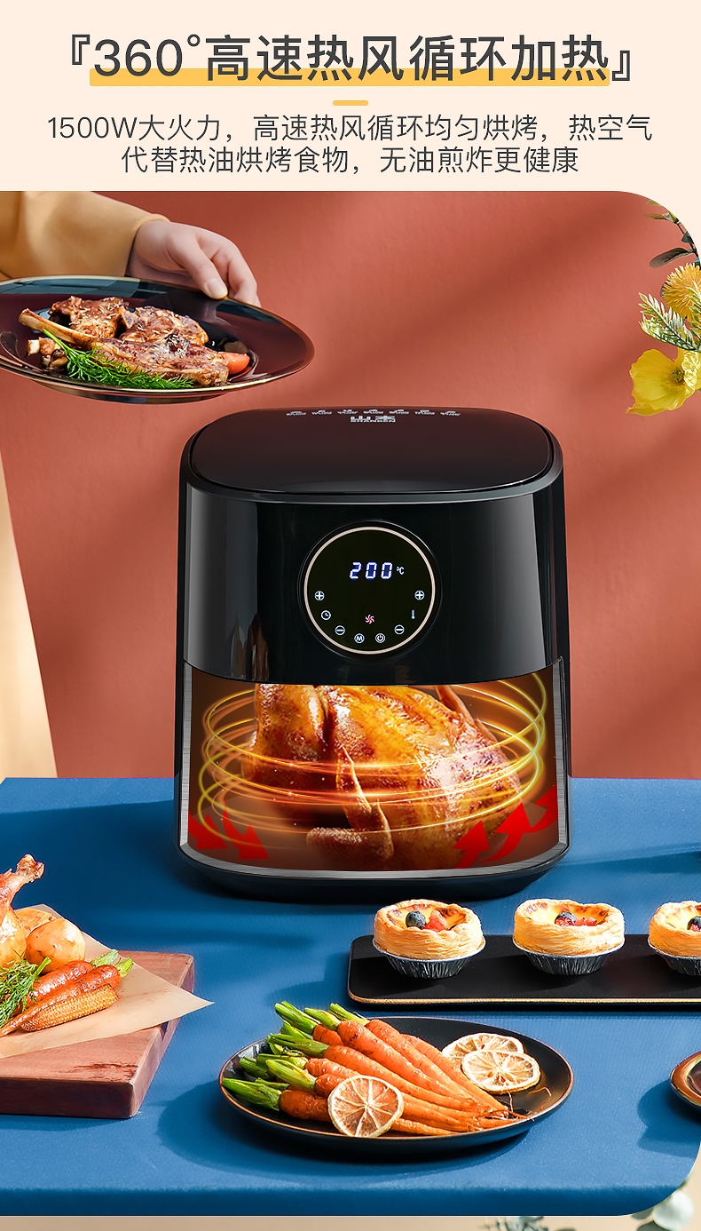 5升大容量;电脑控制操作简便;无油烘烤健康饮食
