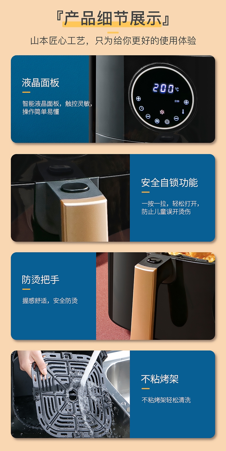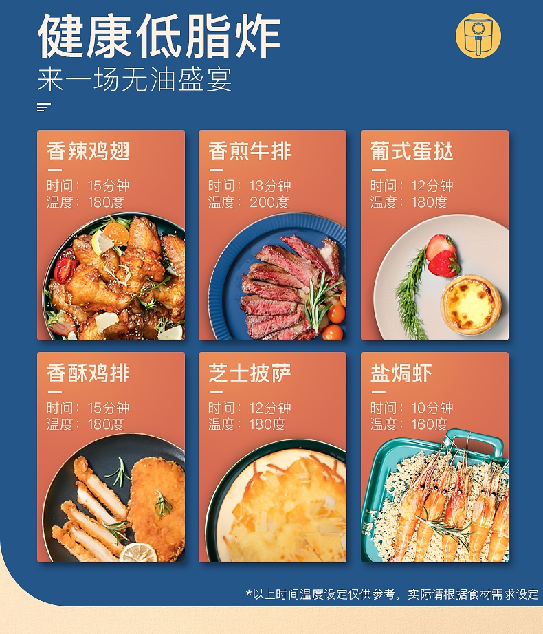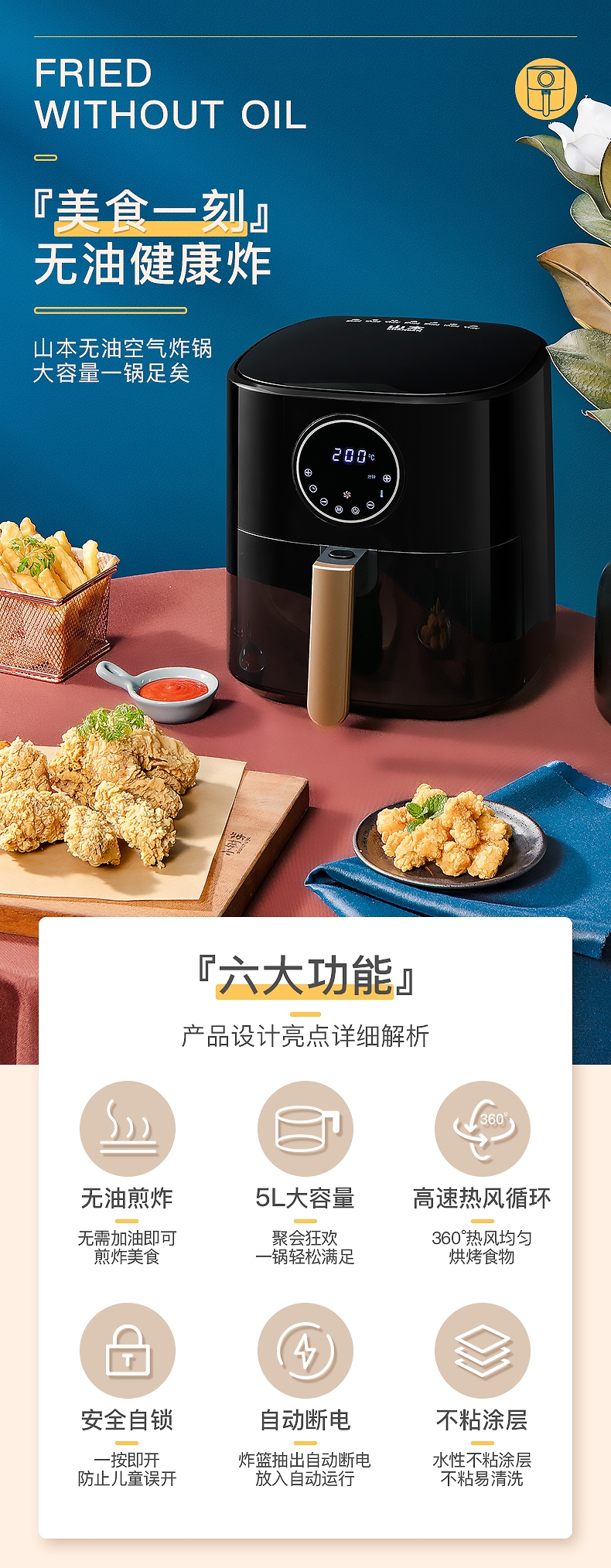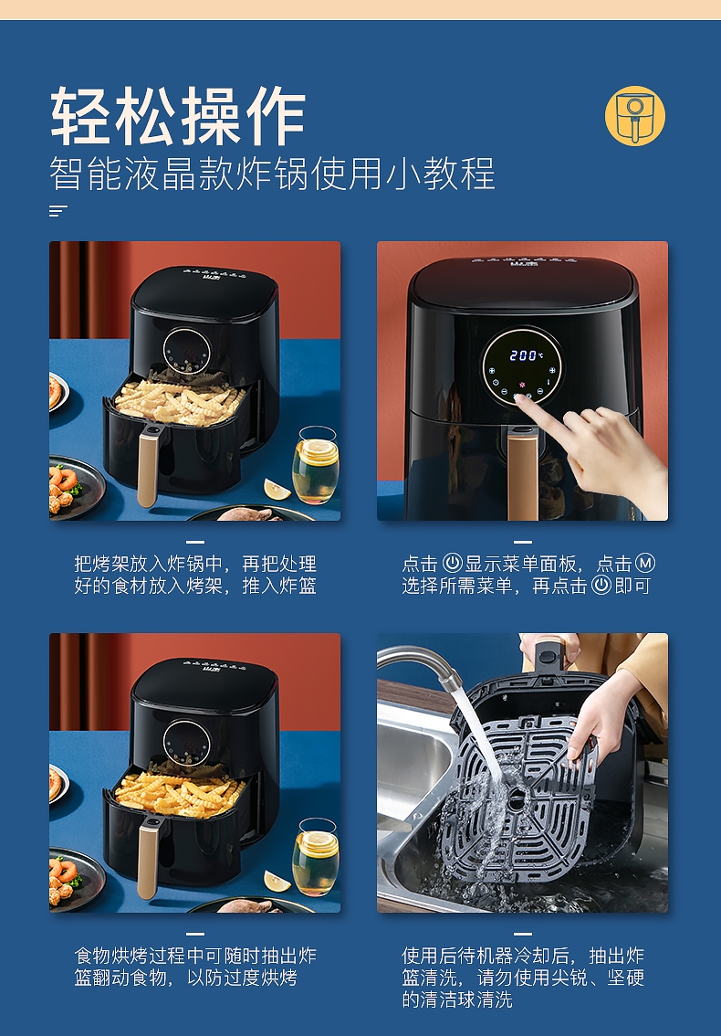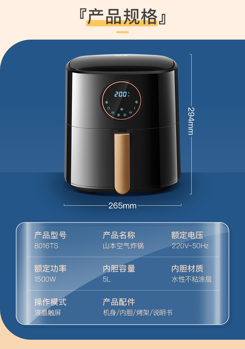 5升大容量;电脑控制操作简便;无油烘烤健康饮食