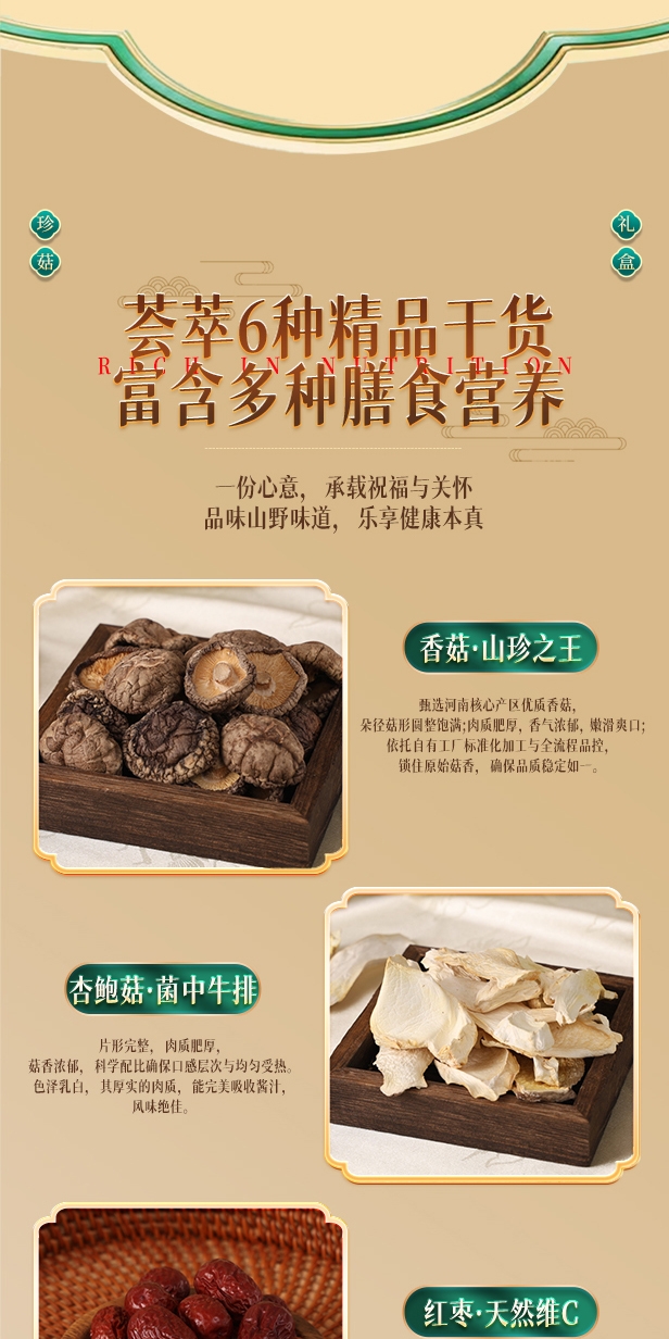 精美包装;名贵菌菇 健康美味;严苛筛选 自然晾晒
