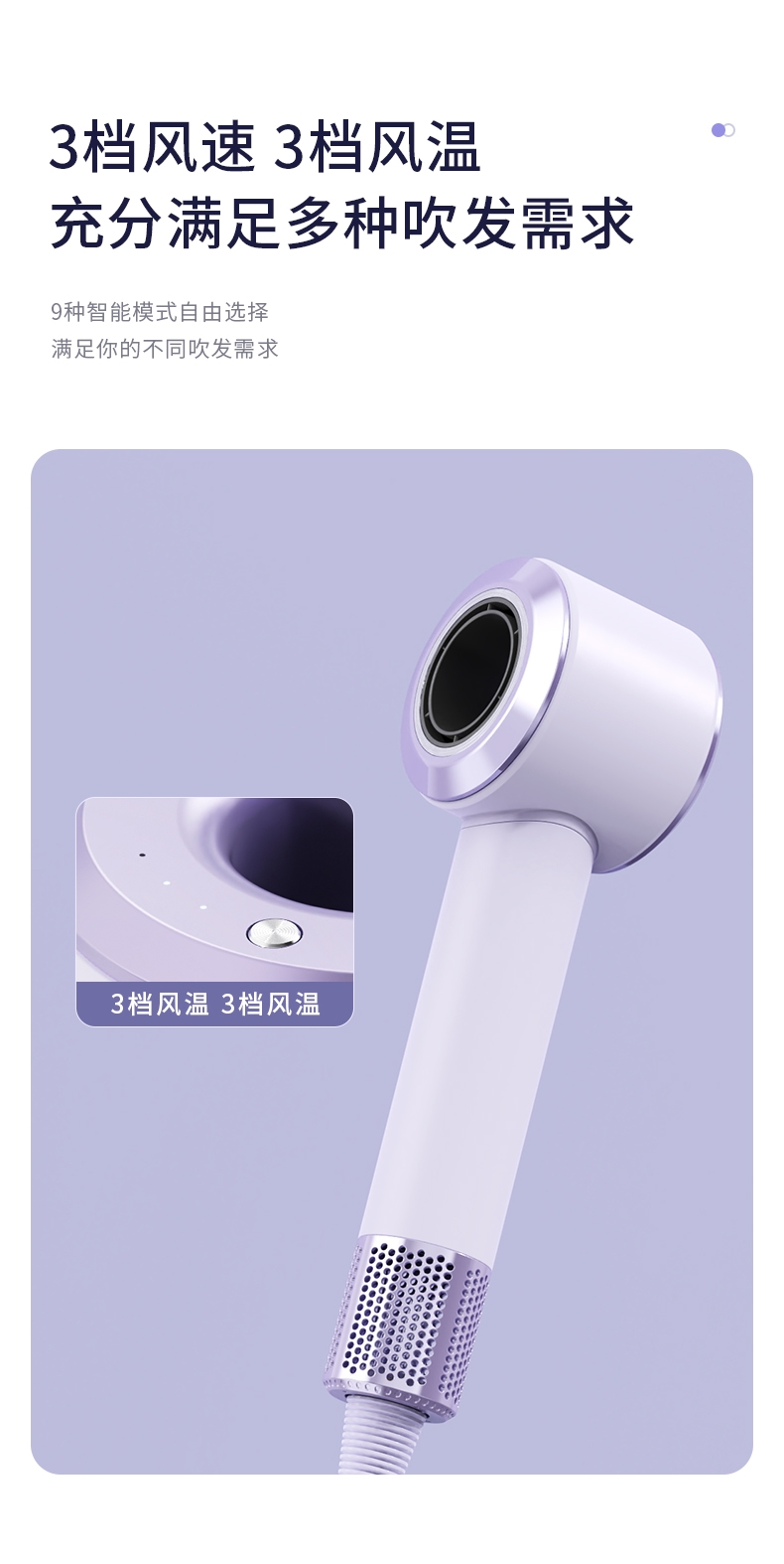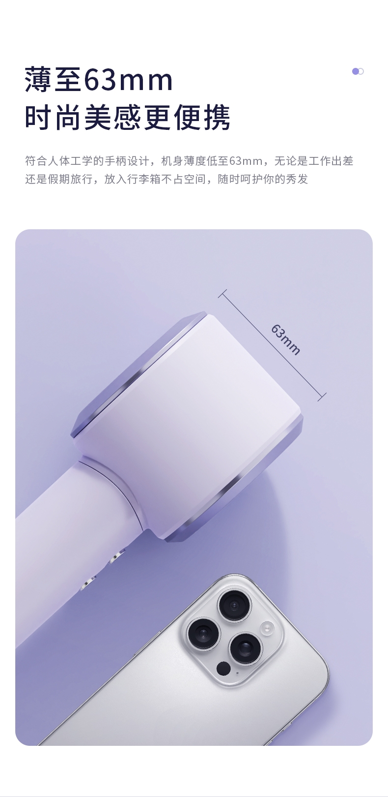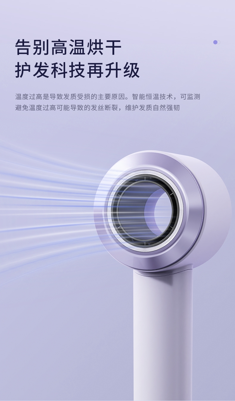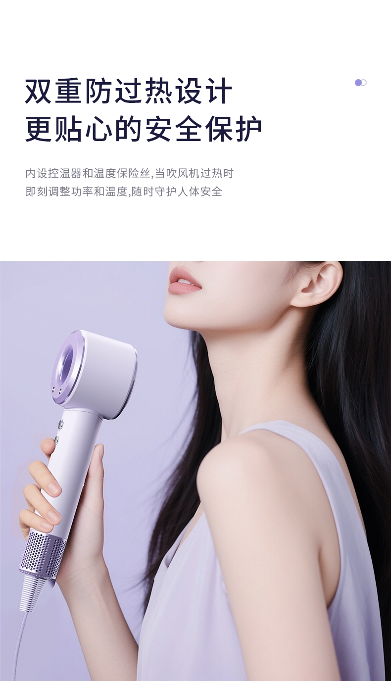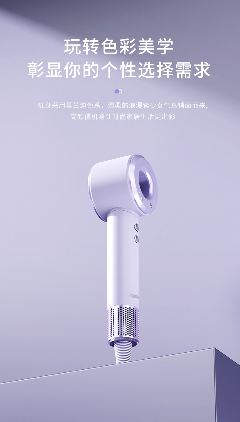 高效吹干 轻巧便携 多重降噪;配置11万转/分钟的自研高速电机;2亿+级负离子科技护发 柔顺到底