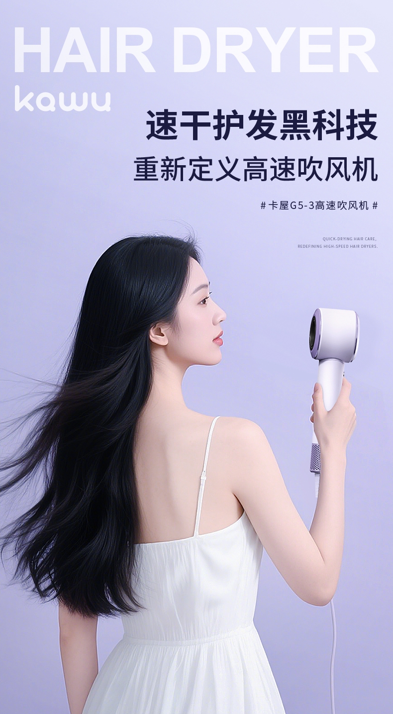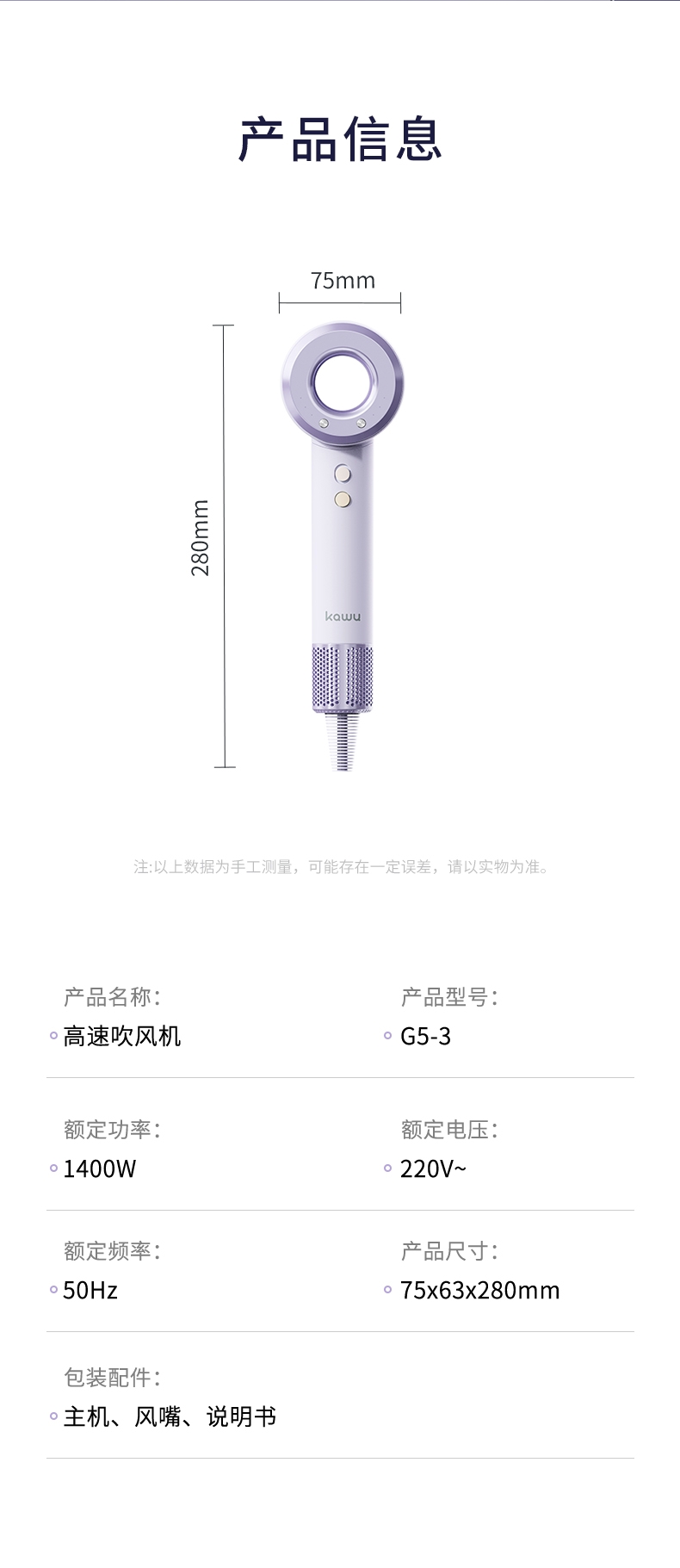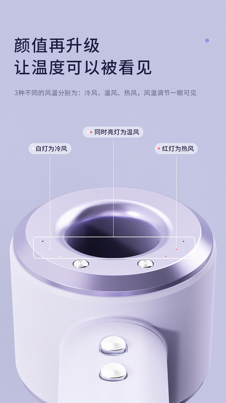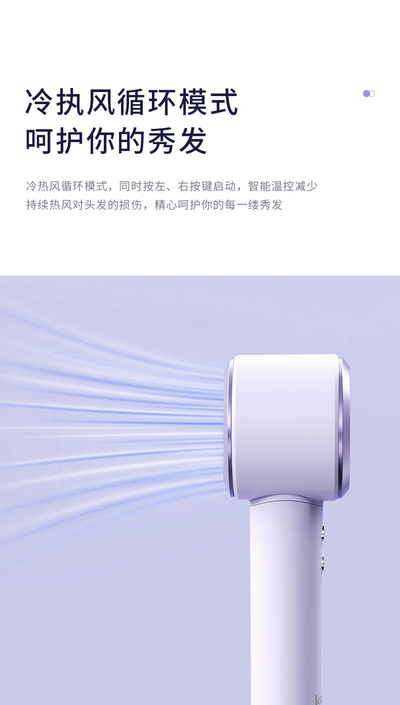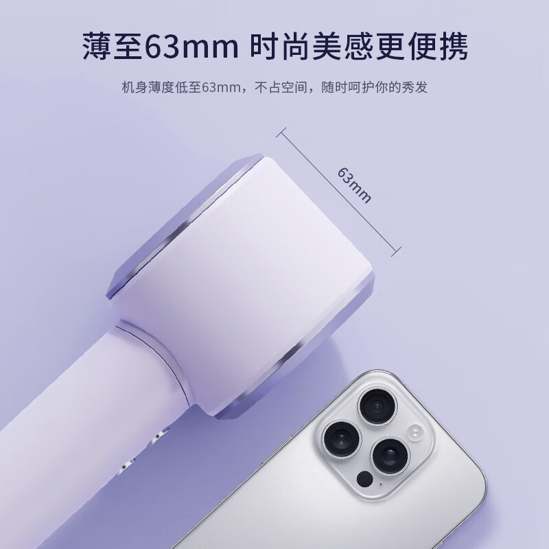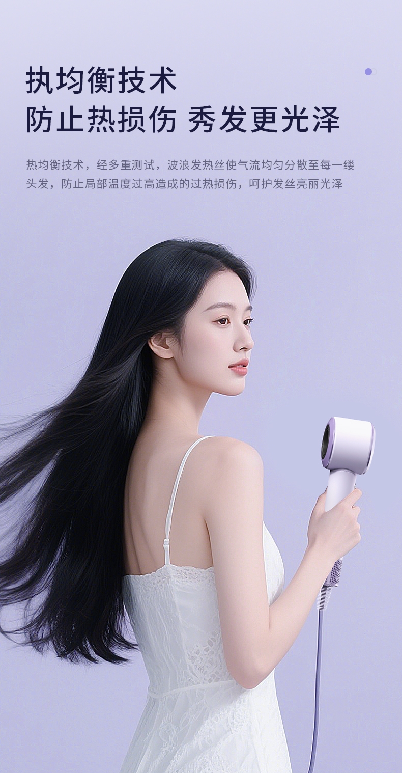 高效吹干 轻巧便携 多重降噪;配置11万转/分钟的自研高速电机;2亿+级负离子科技护发 柔顺到底