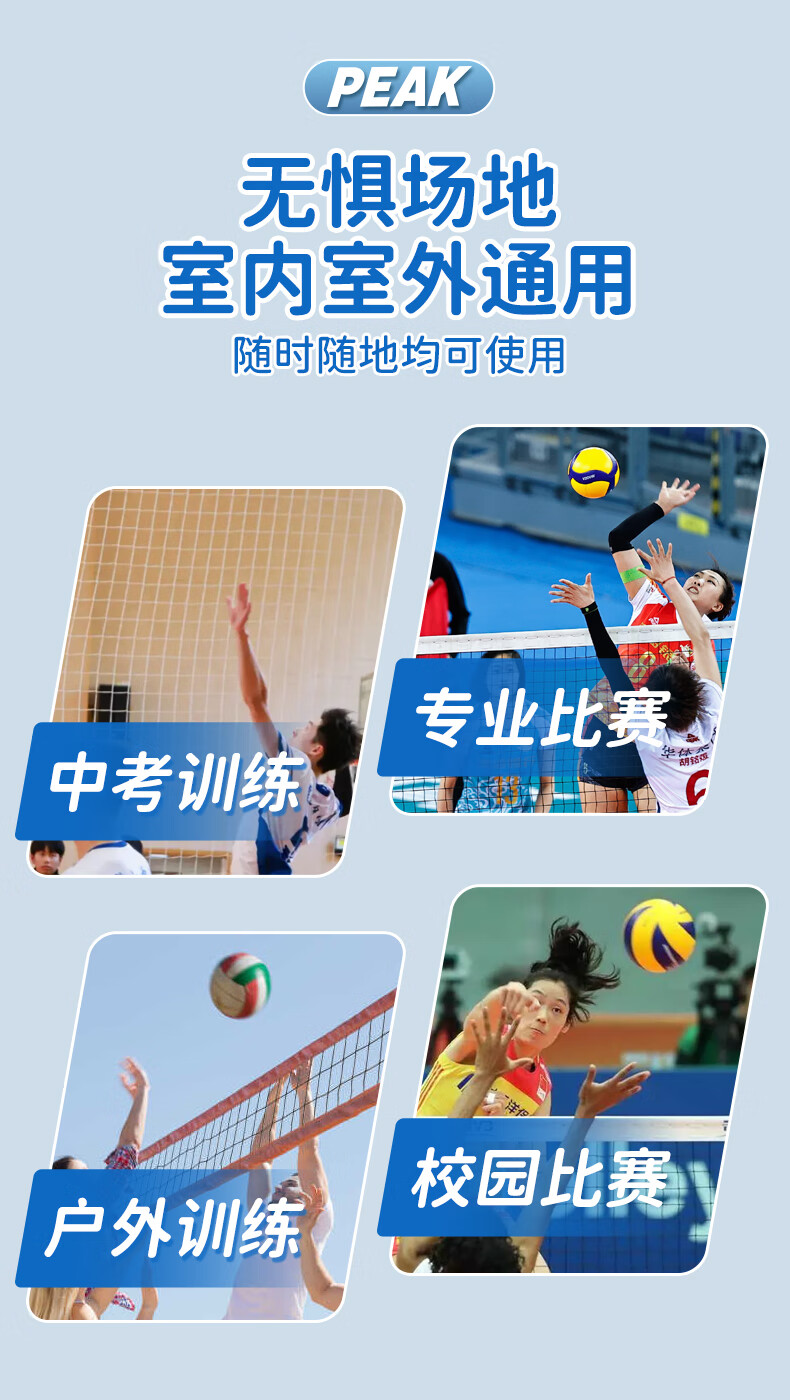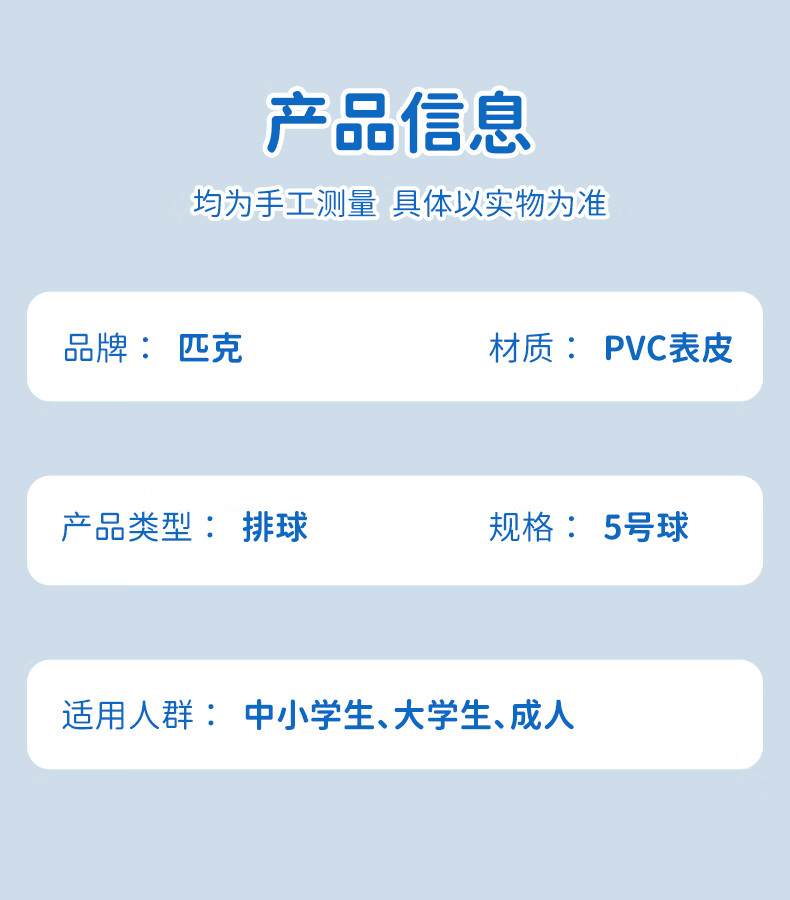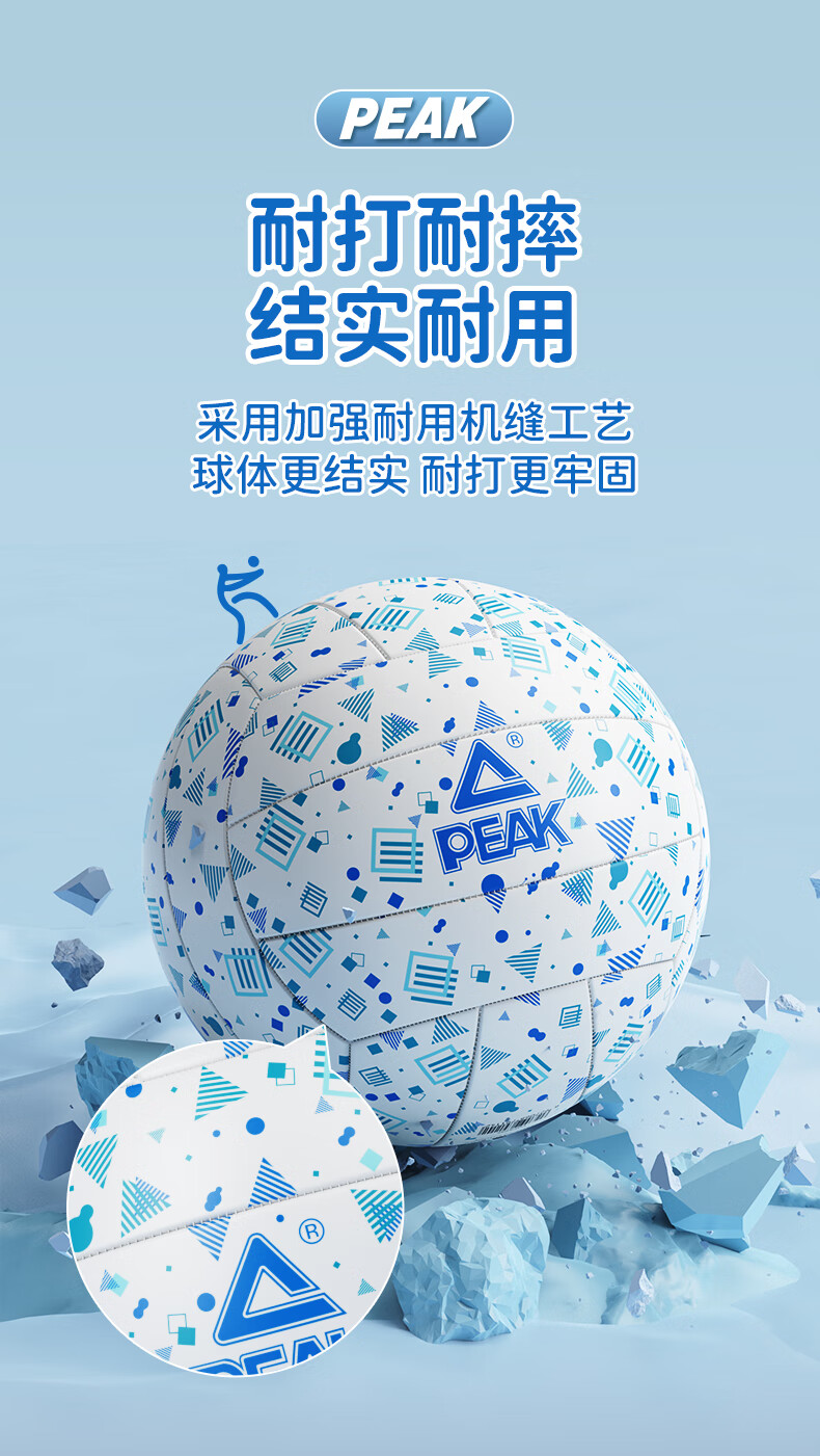 PVC材质相对较轻,使得排球整体重量适中;PVC材料具有良好的防水性能;外观颜色鲜艳、图案多样