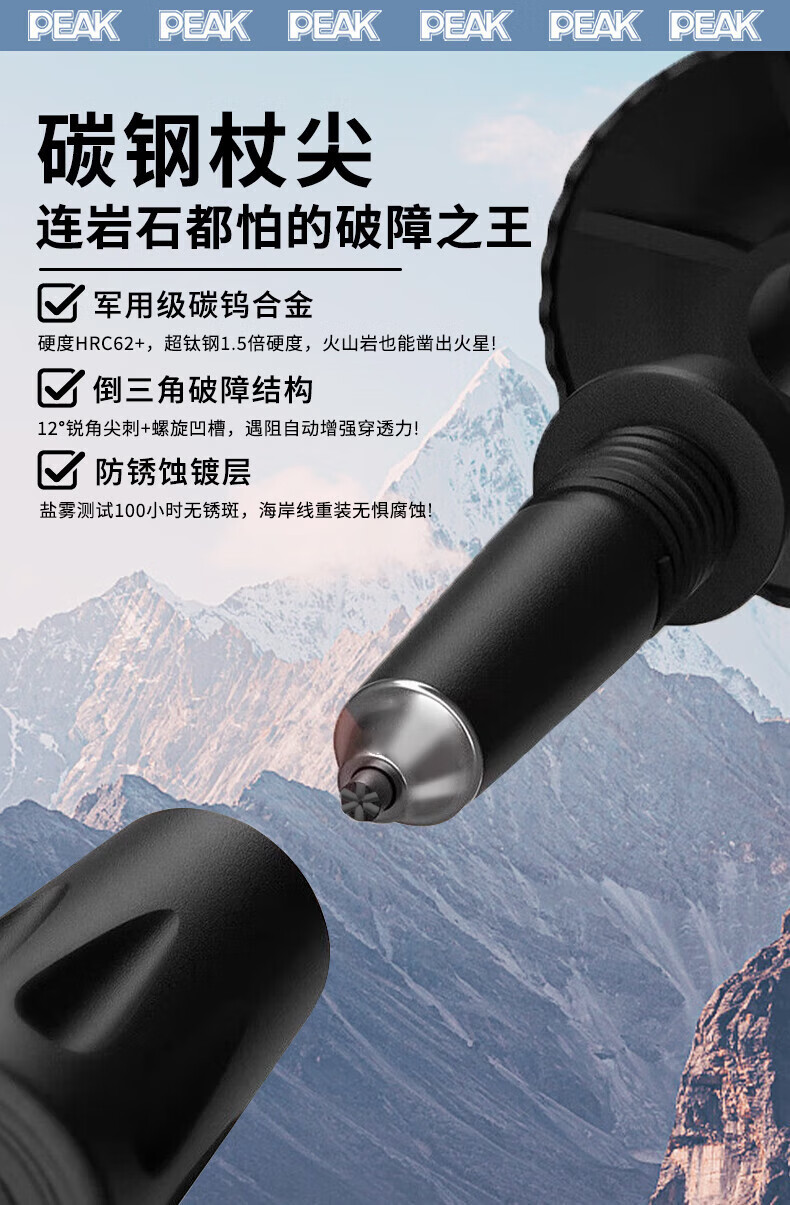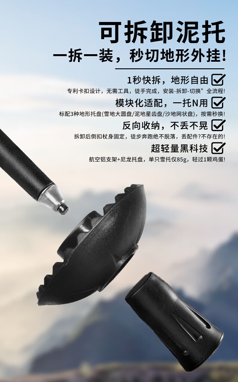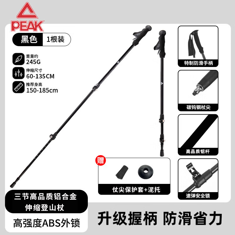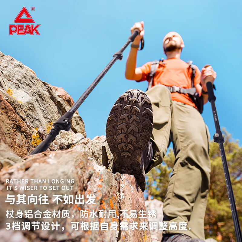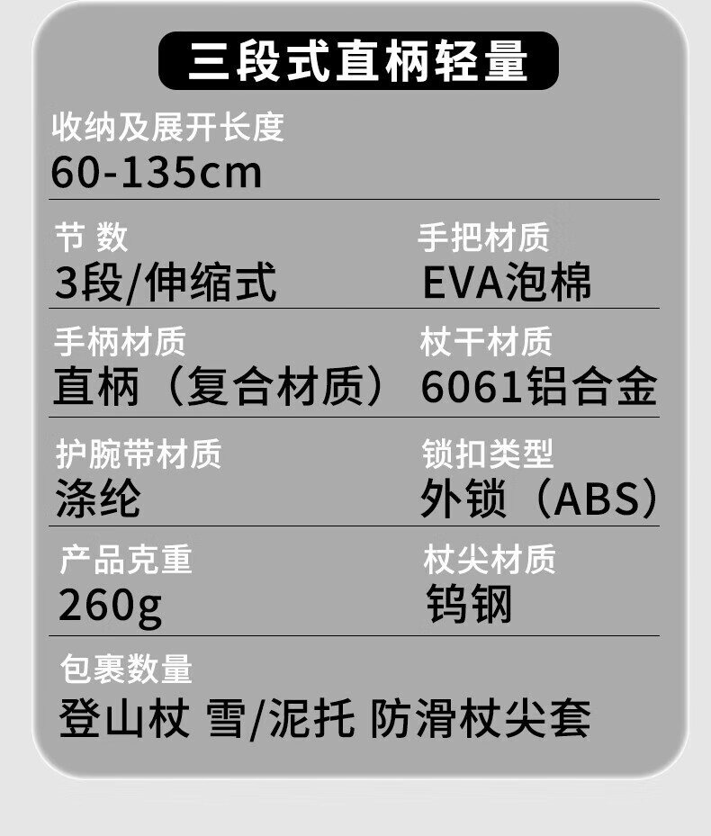 铝合金材质密度低,重量较轻;具有较高的抗拉强度和抗疲劳性能,能够承受较大的压力;铝合金登山杖通常采用多节伸缩设计(三节)