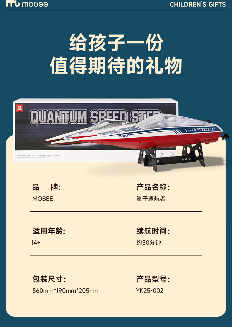 小象莫贝 儿童遥控船玩具量子速航者YK25-002