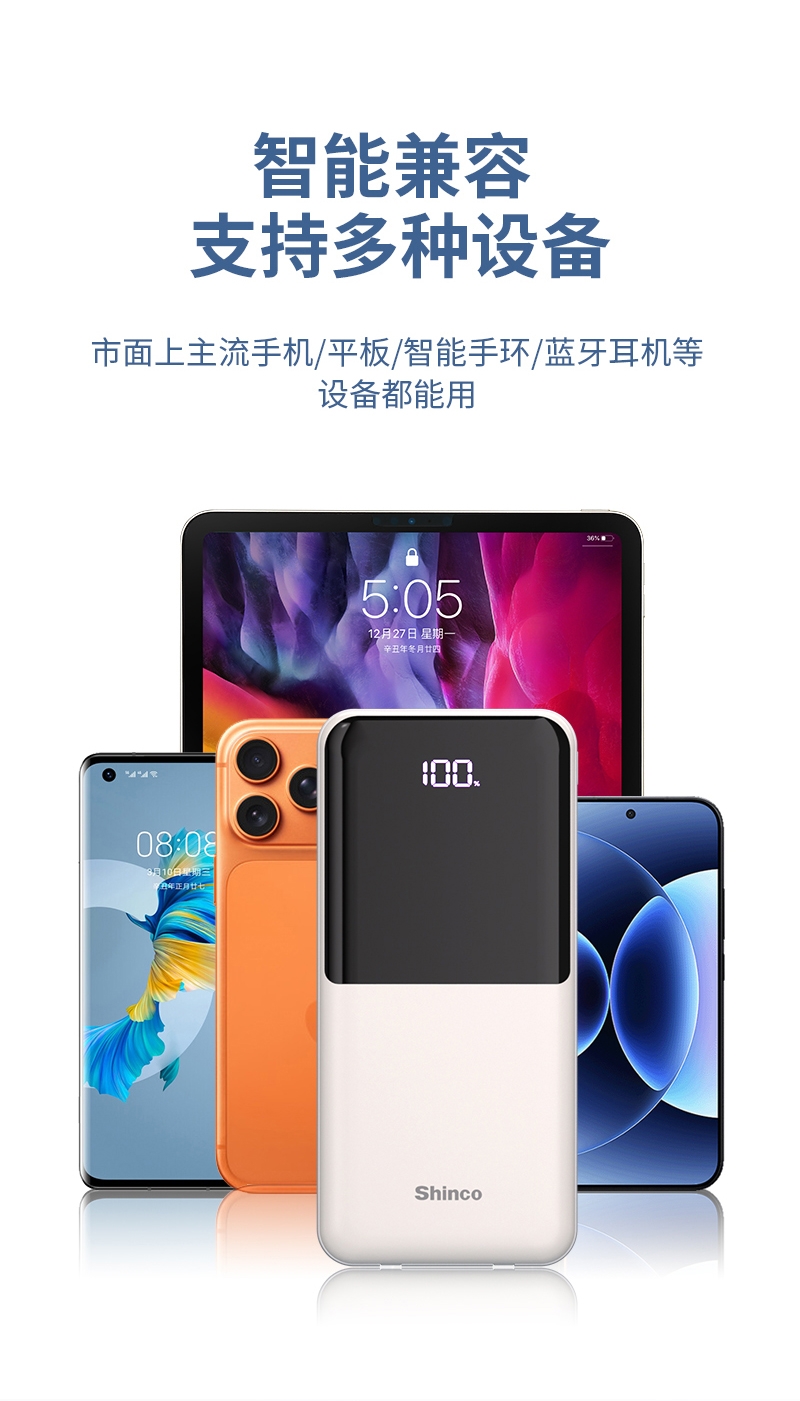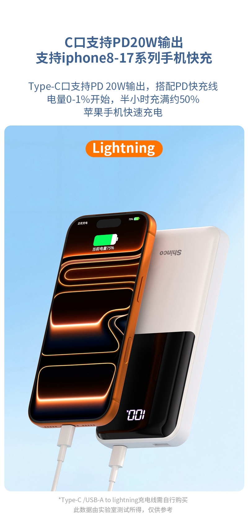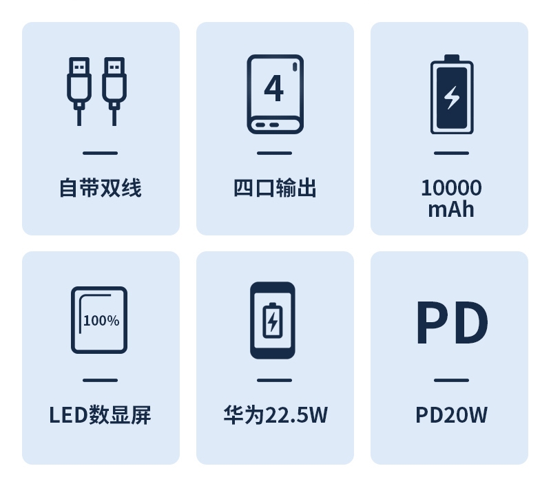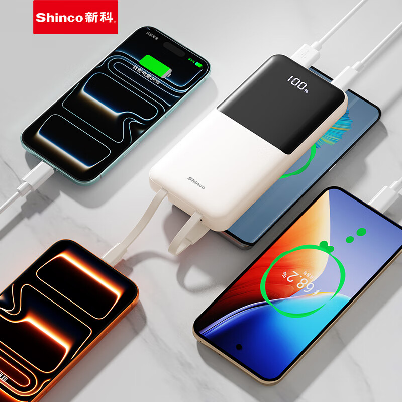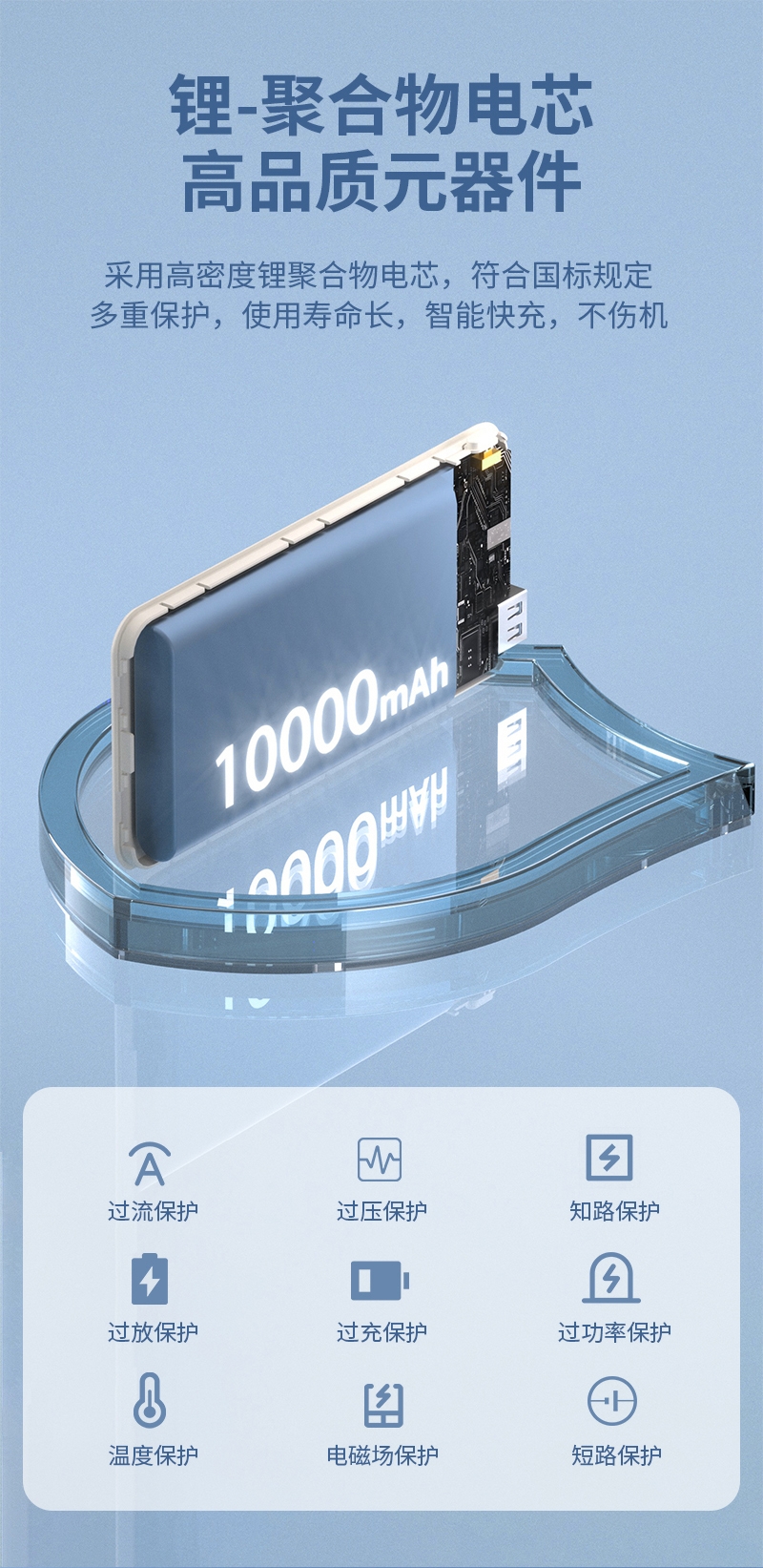 随身自带线、随用随充;大容量 10000mAh、出行电量没烦恼;智能大数显屏、电量一目了然