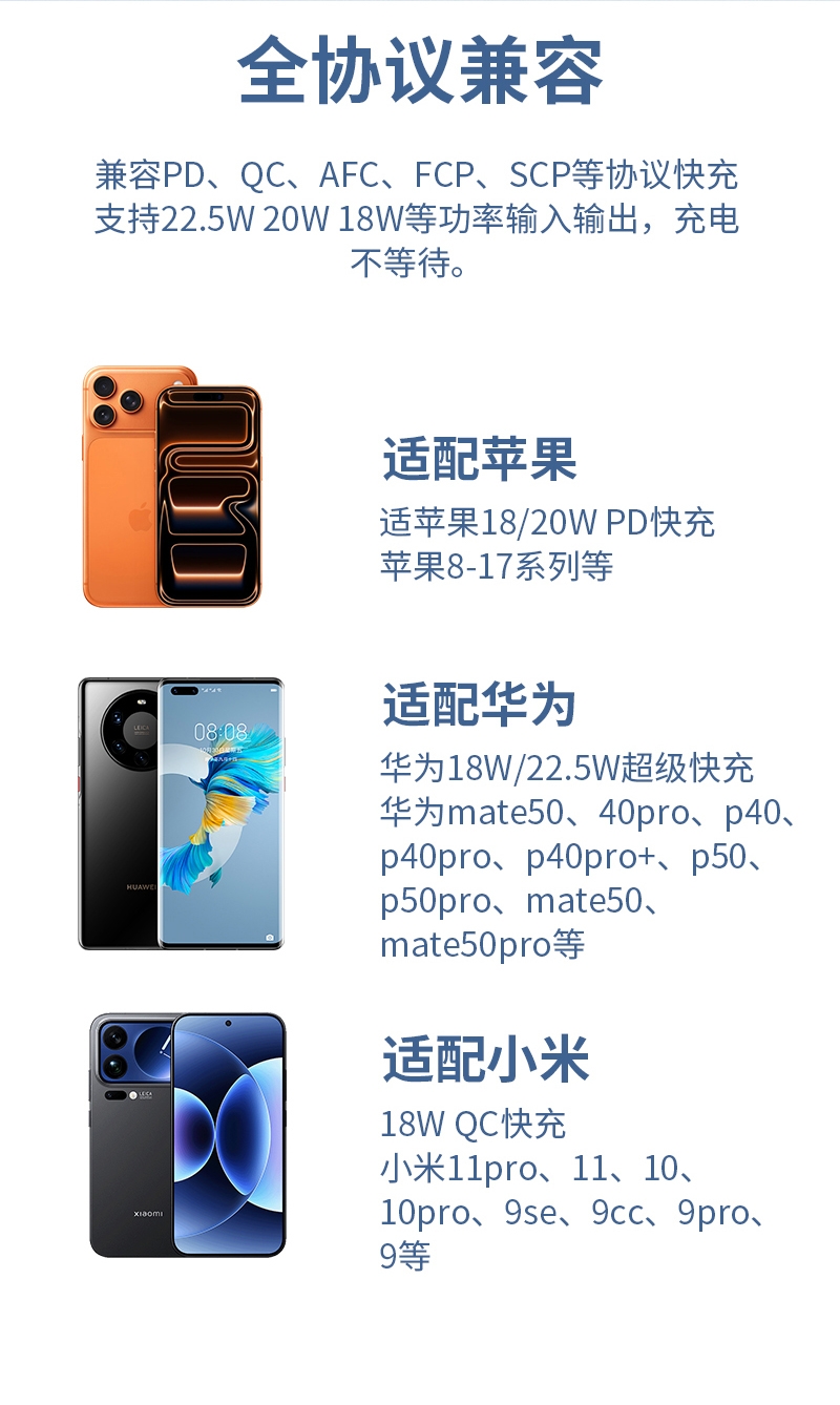 充电协议:PD3.0,QC2.0,QC3.0,QC4.0