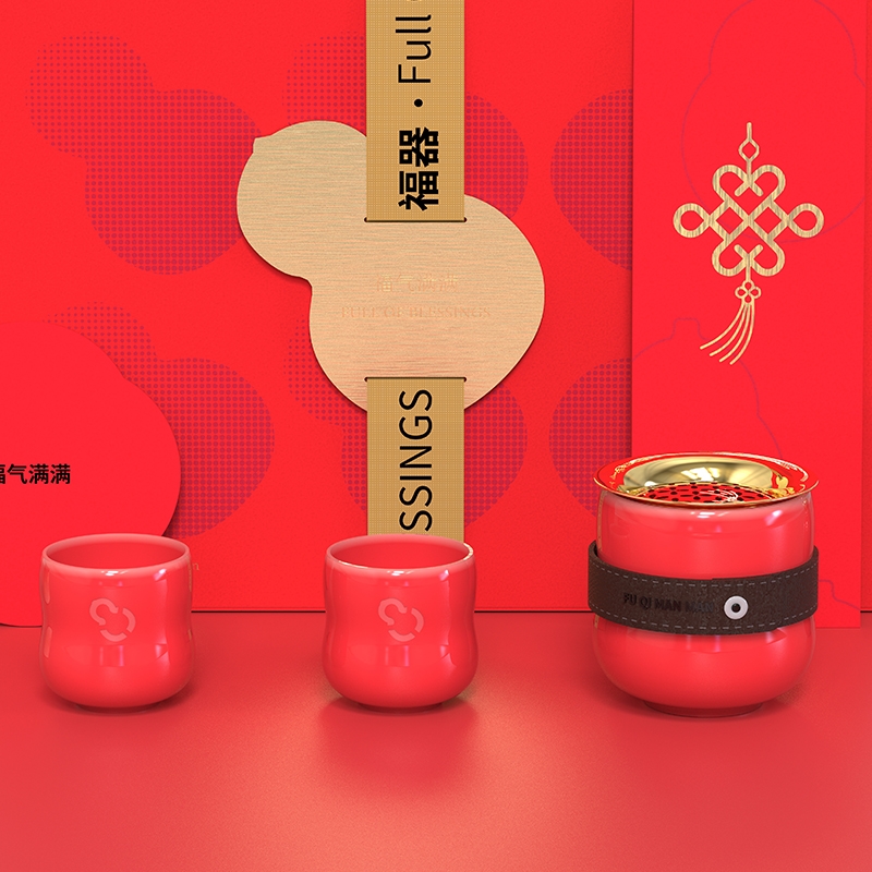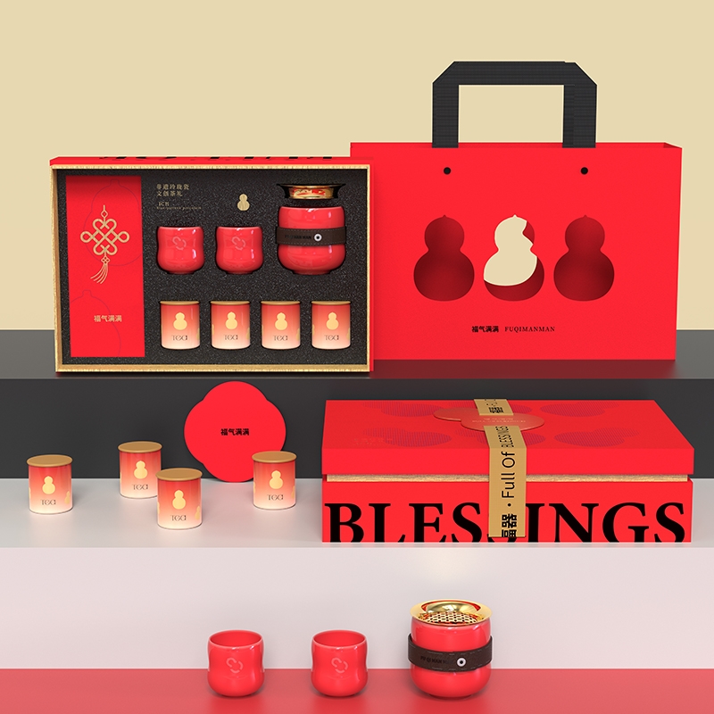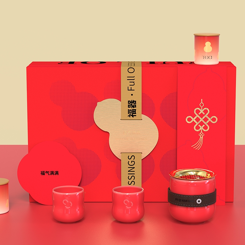 葫芦纳福,茶器一体实用又典雅;甄选四茶,融汇茶韵四时之妙;朱红礼盒,传统现代融合送福气