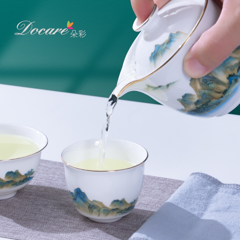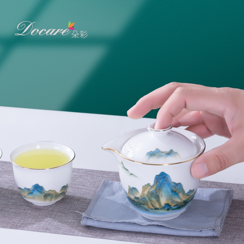 朵彩 千里江山骨质瓷快客杯三件套DC-K301A