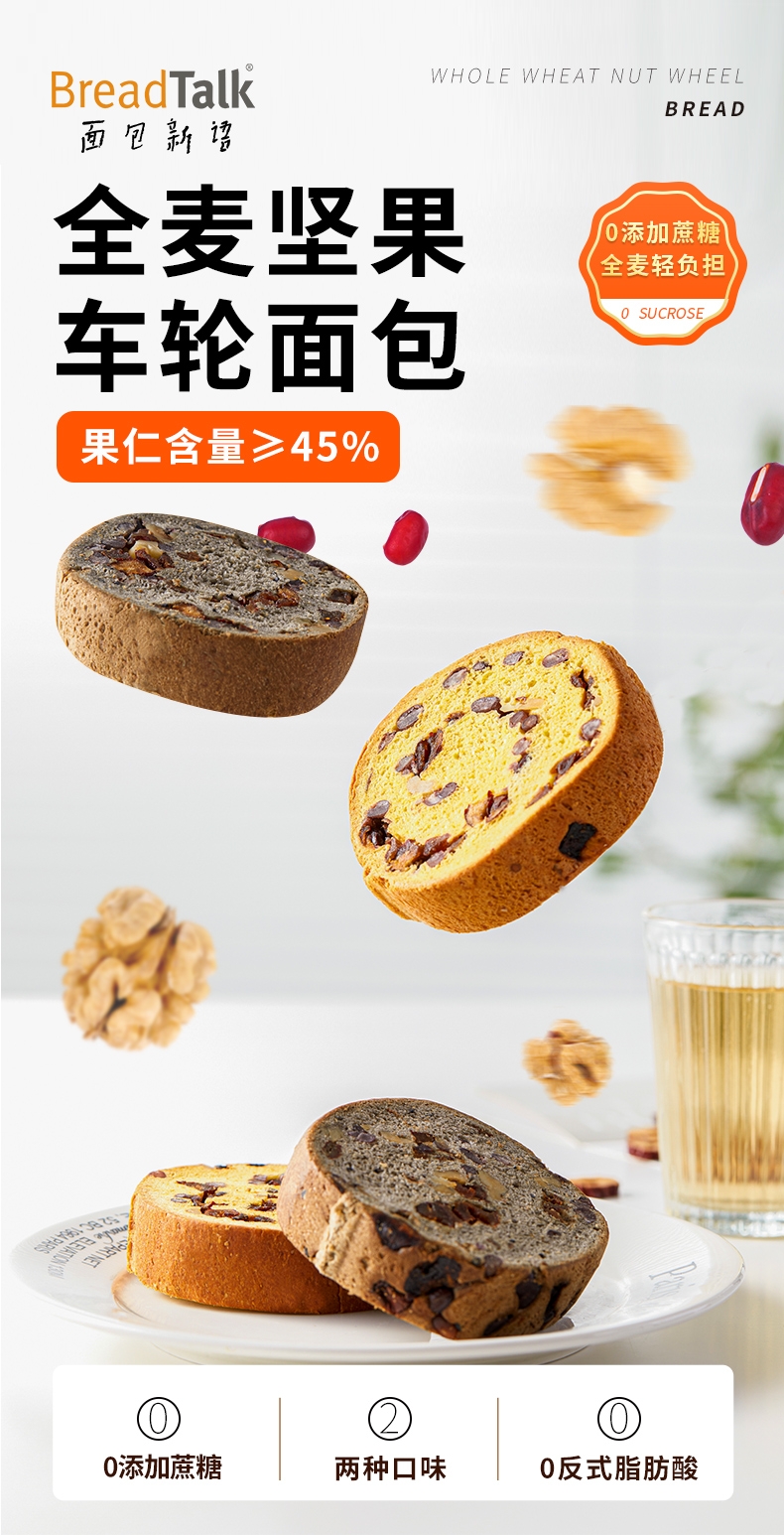 0添加蔗糖 全麦轻负担;果仁含量≥45%;满满馅料 饱腹有营养