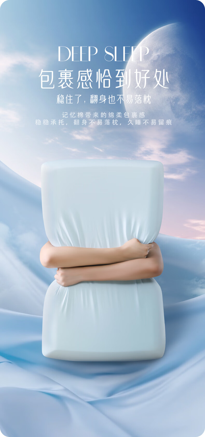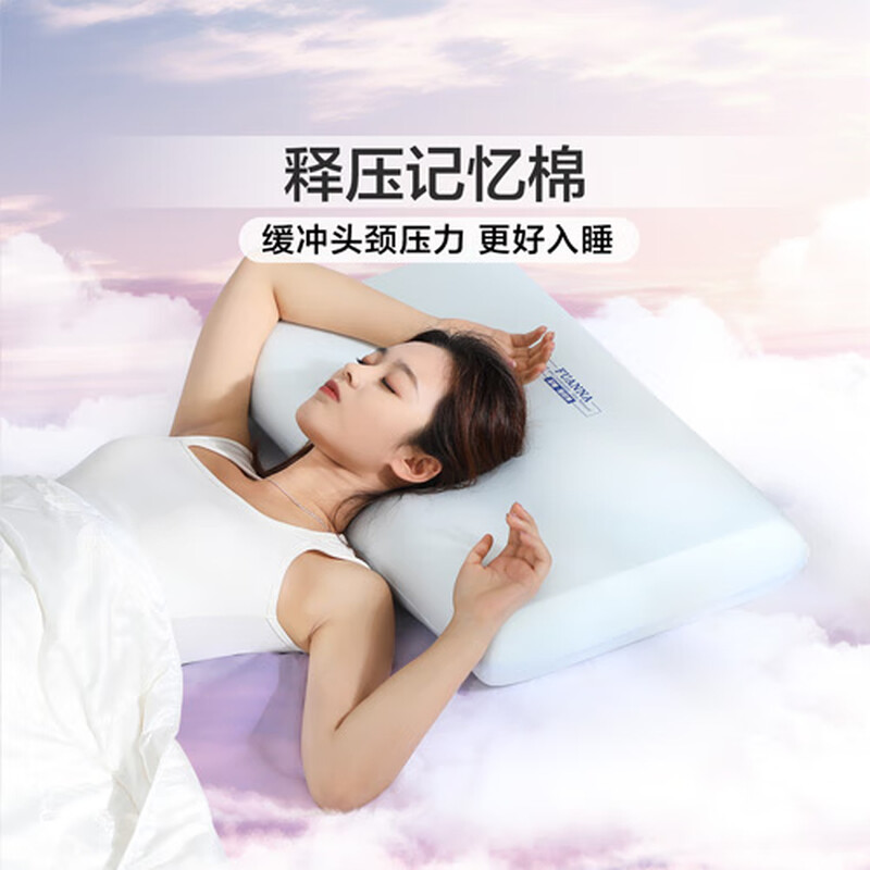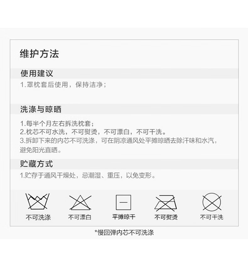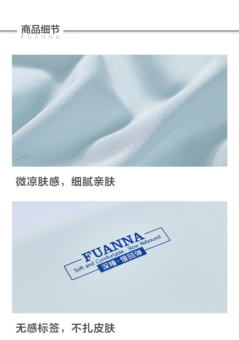 慢回弹 释压舒眠 下压后会缓慢回弹,释放压力,享受;贴合肩颈曲线 科学曲线贴合头部,保持颈椎正常牵引,;面料经磨毛机和金刚砂皮的打磨处理,