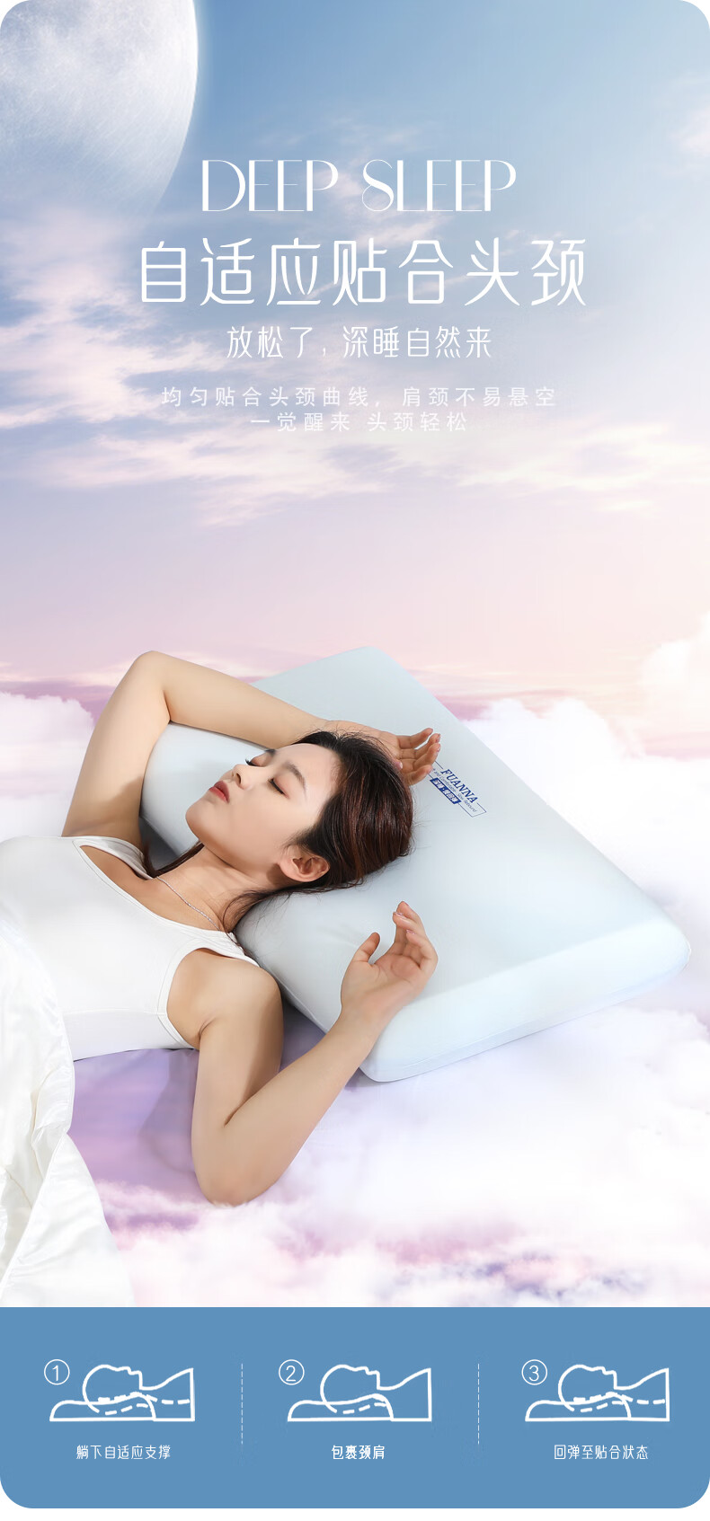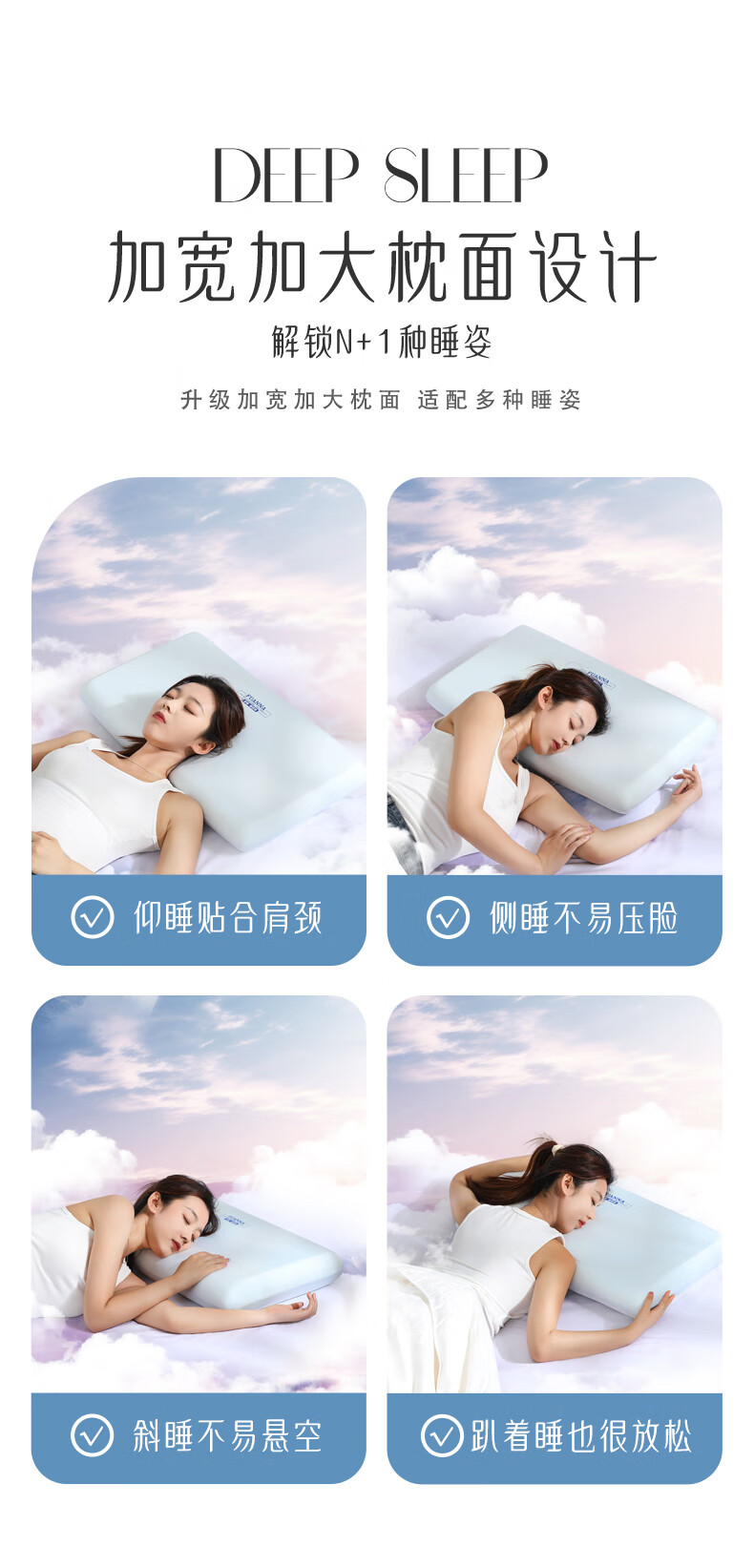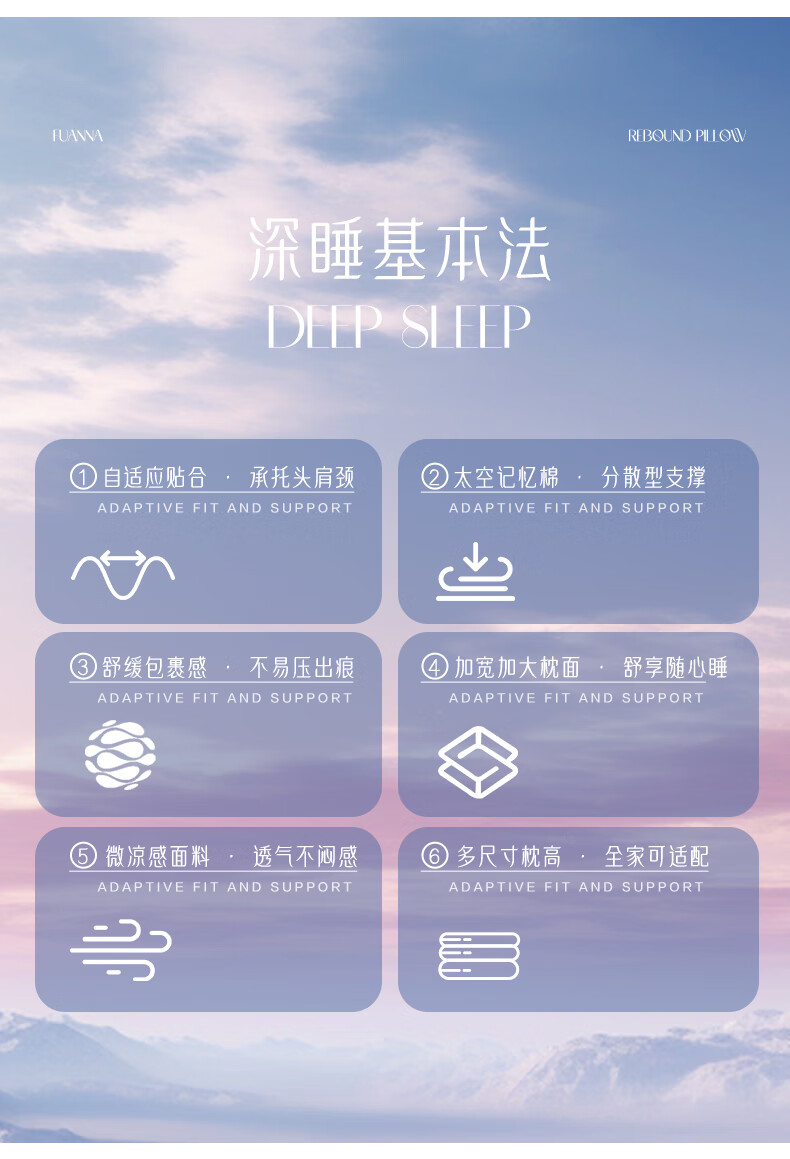 慢回弹 释压舒眠 下压后会缓慢回弹,释放压力,享受;贴合肩颈曲线 科学曲线贴合头部,保持颈椎正常牵引,;面料经磨毛机和金刚砂皮的打磨处理,