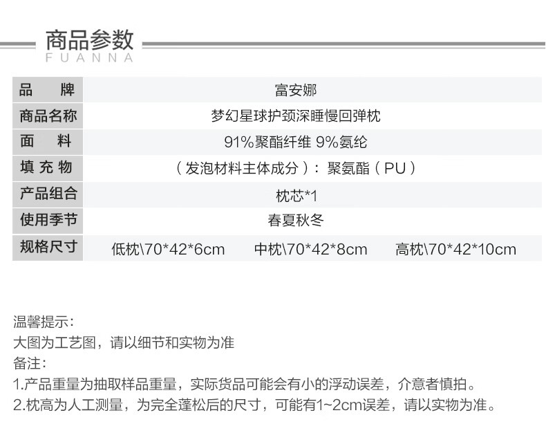 富安娜 梦幻星球护颈深睡慢回弹中枕