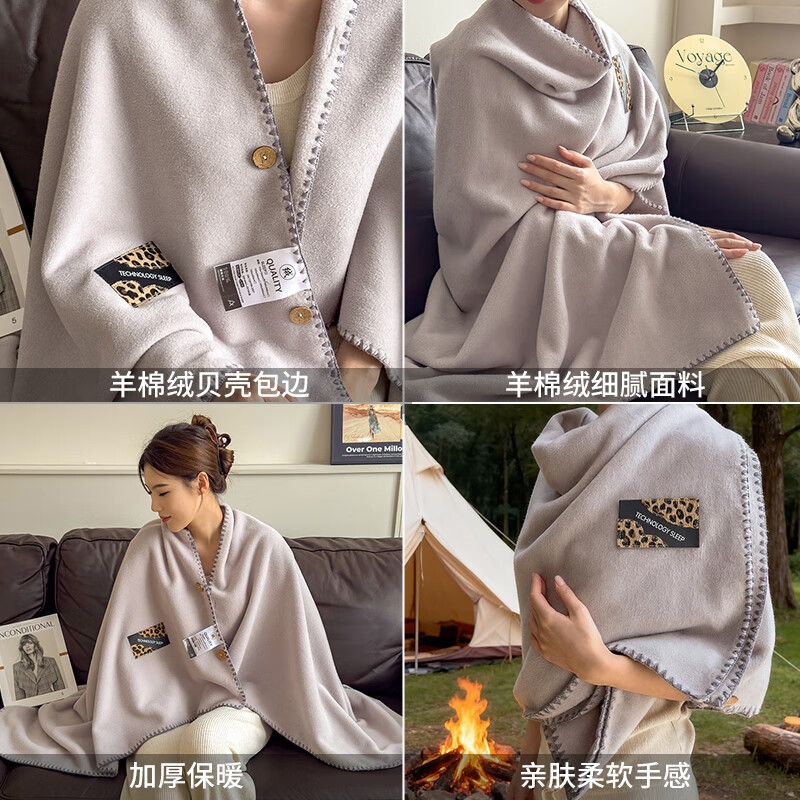 雅鹿 A类羊棉绒包边披肩毯YLBZ008