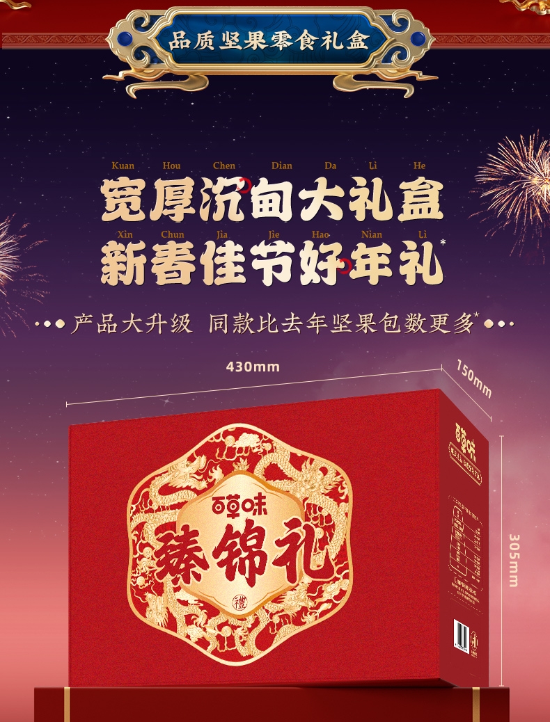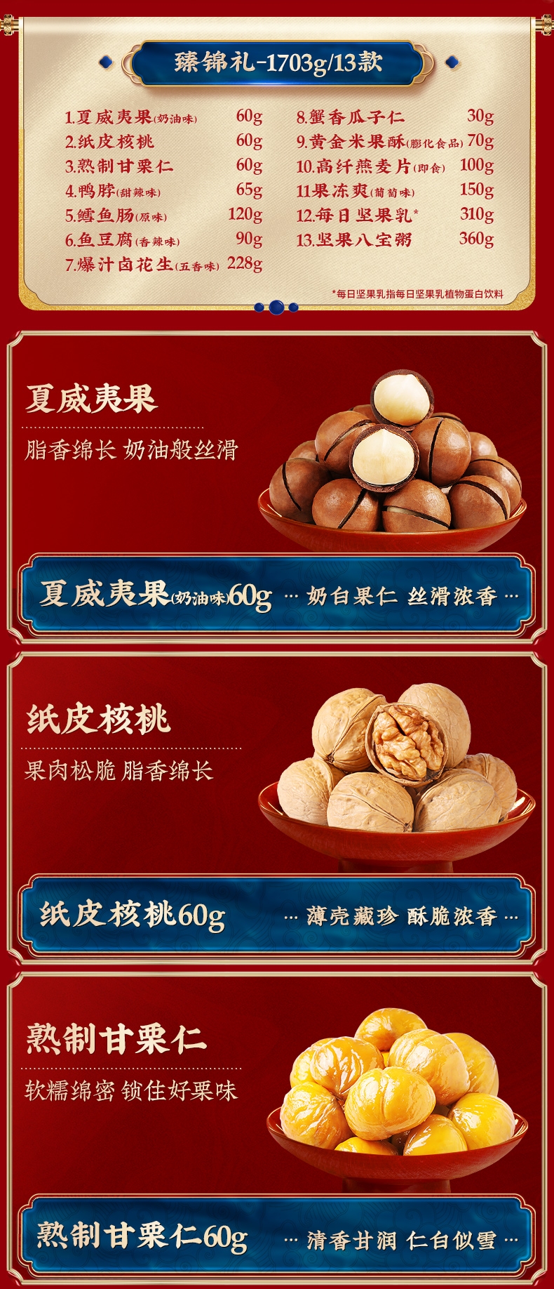 1703g 超大分量,性价比拉满;大牌品质保障,品类丰富多元;定制 + 体面礼赠,多场景适配