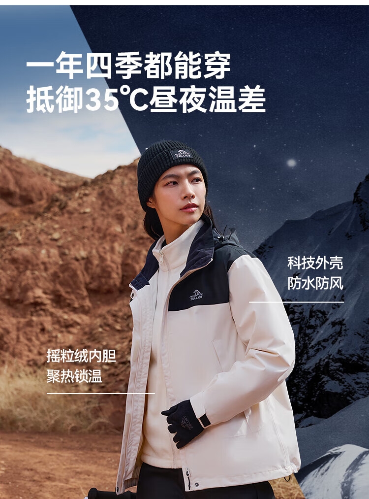 伯希和 户外秋冬男女三合一冲锋衣男款114301029
