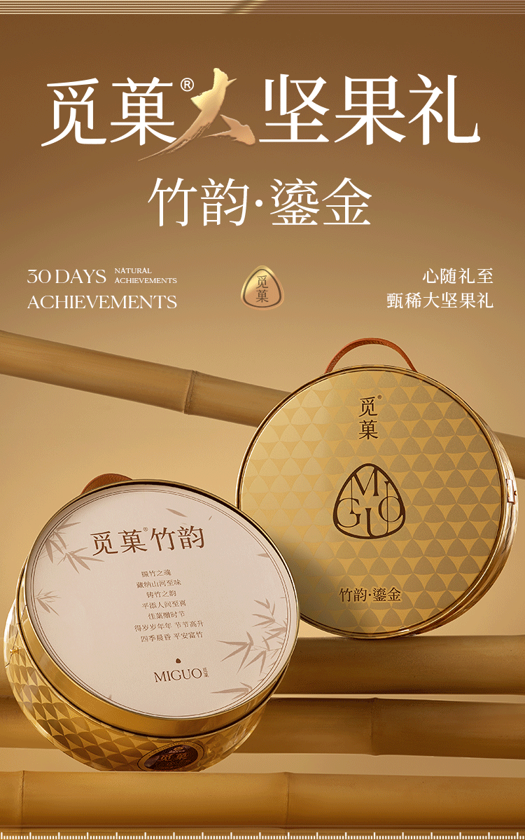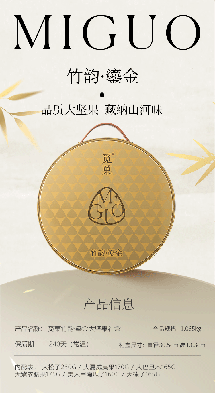 单层鎏金手拎礼盒, 更添高贵 六款经典产品内配;坚果独有的口感和香气,让您回味无穷;每一颗都经过精心挑选,保证新鲜和品质