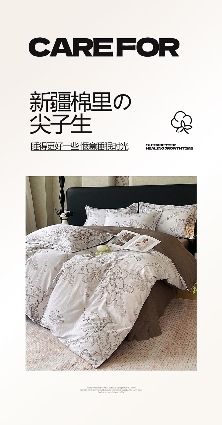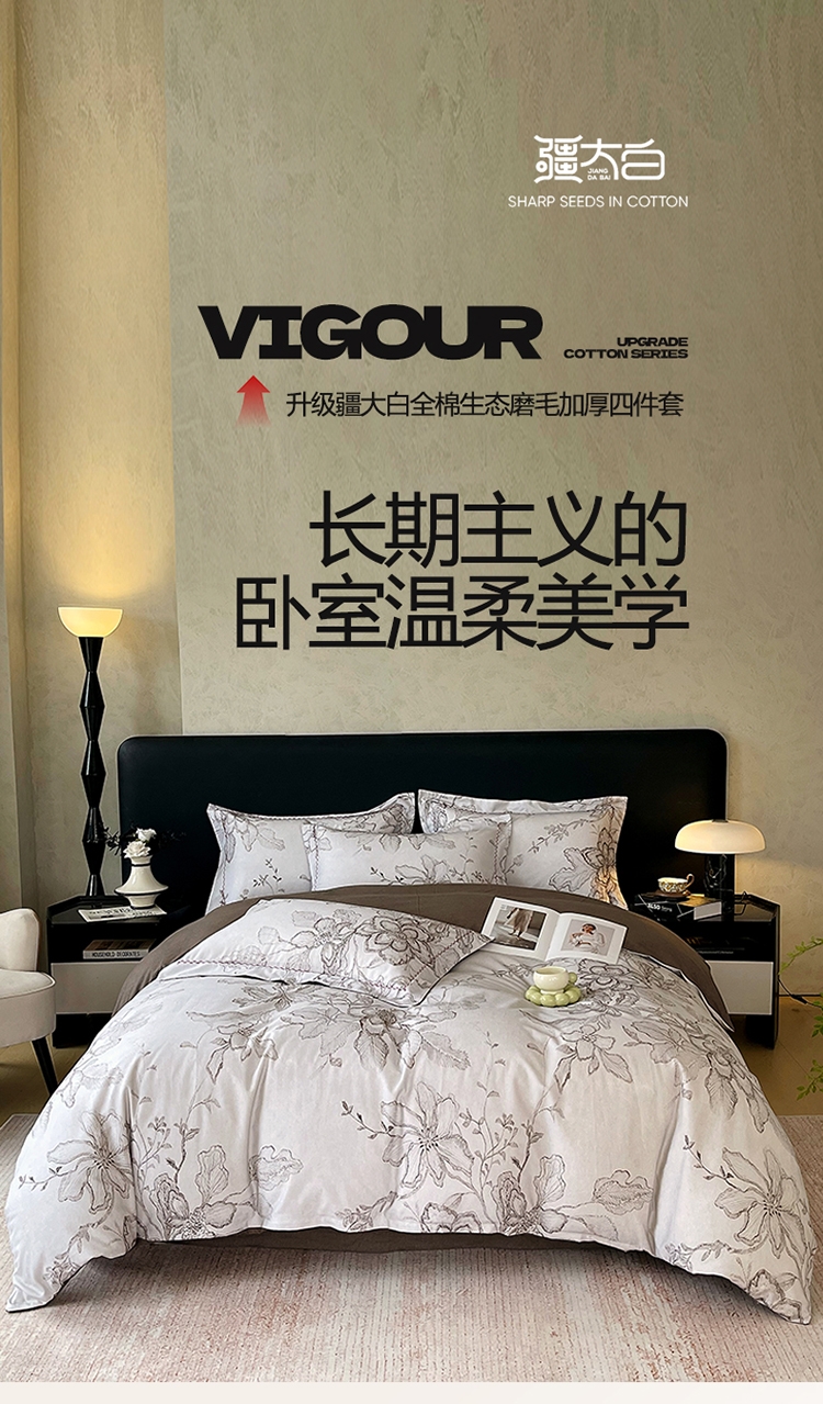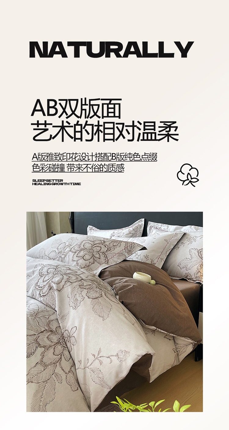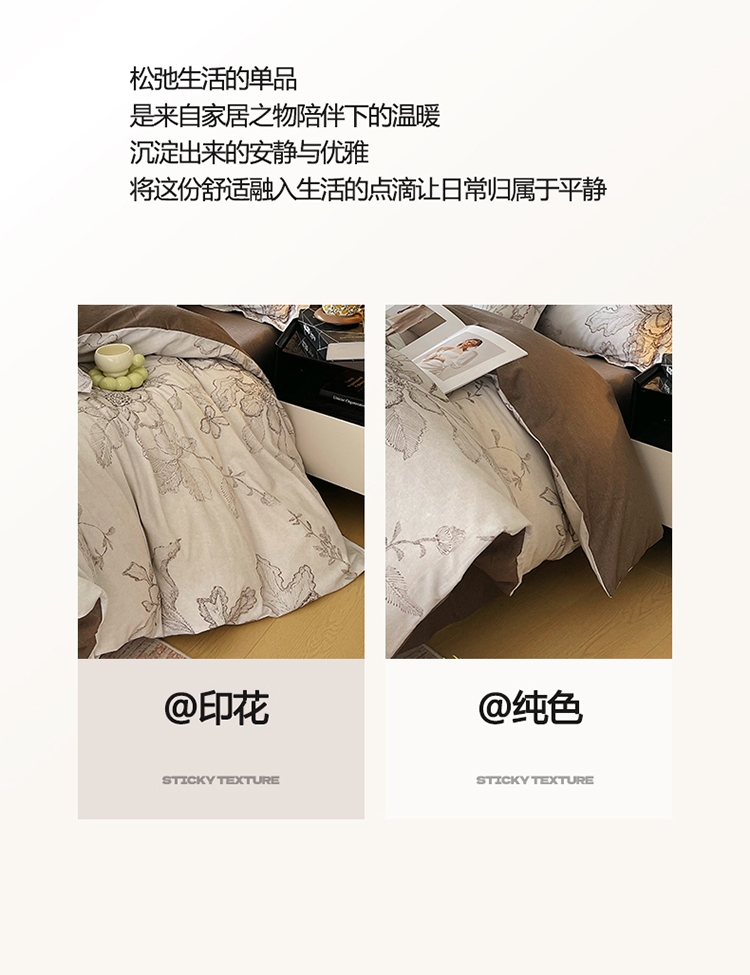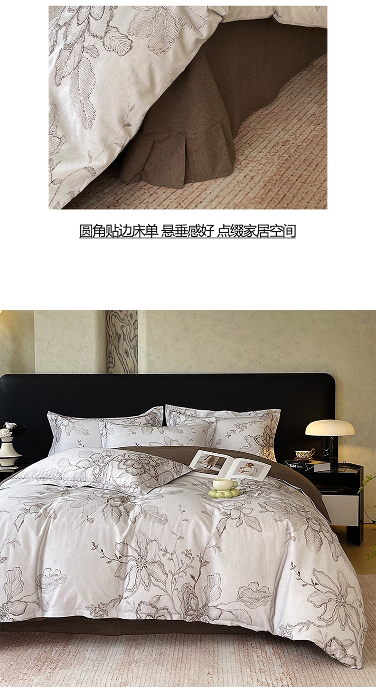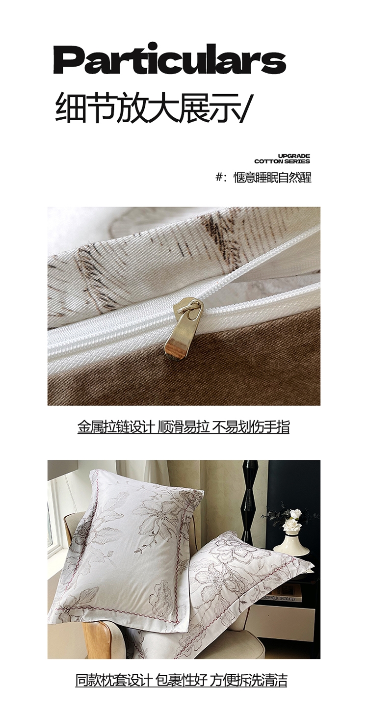 全棉磨毛面料,软糯贴肤触感,柔滑细腻感知好睡眠;活性印染工艺,色泽靓丽不易褪色;新一代活性印染工艺,固色度更加持久不易褪色