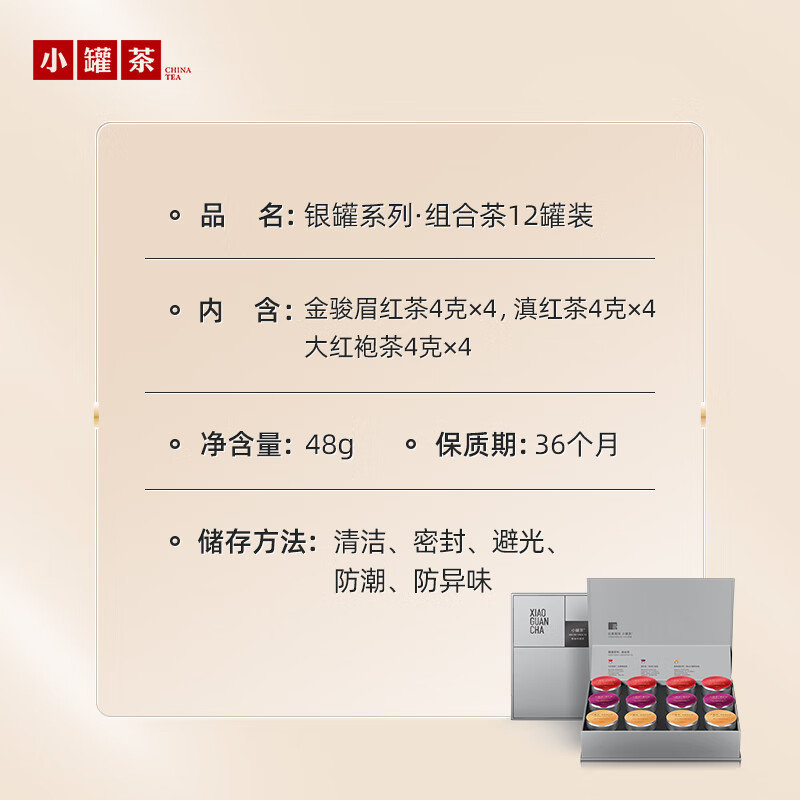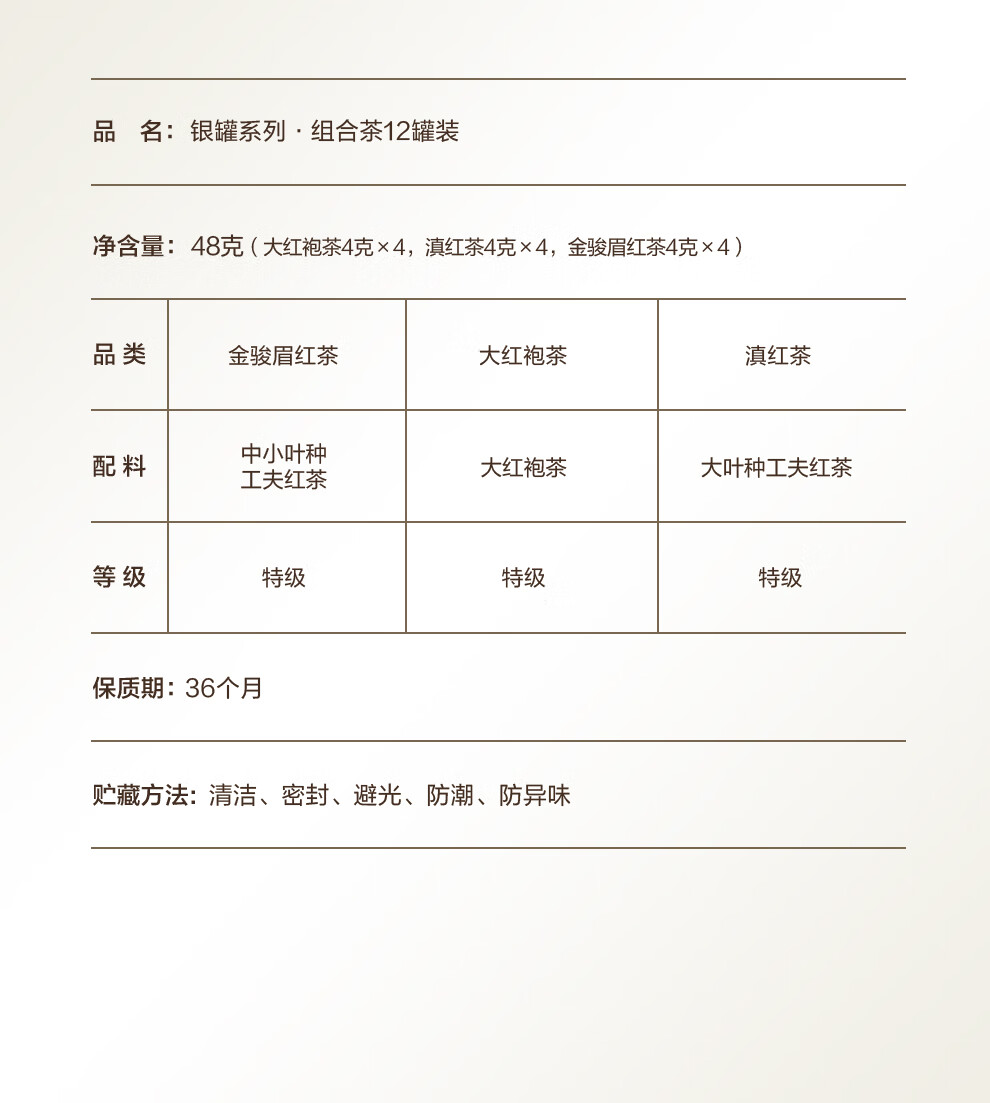 配置:大红袍茶4克x4,滇红茶4克x4,金骏眉红茶4克x4