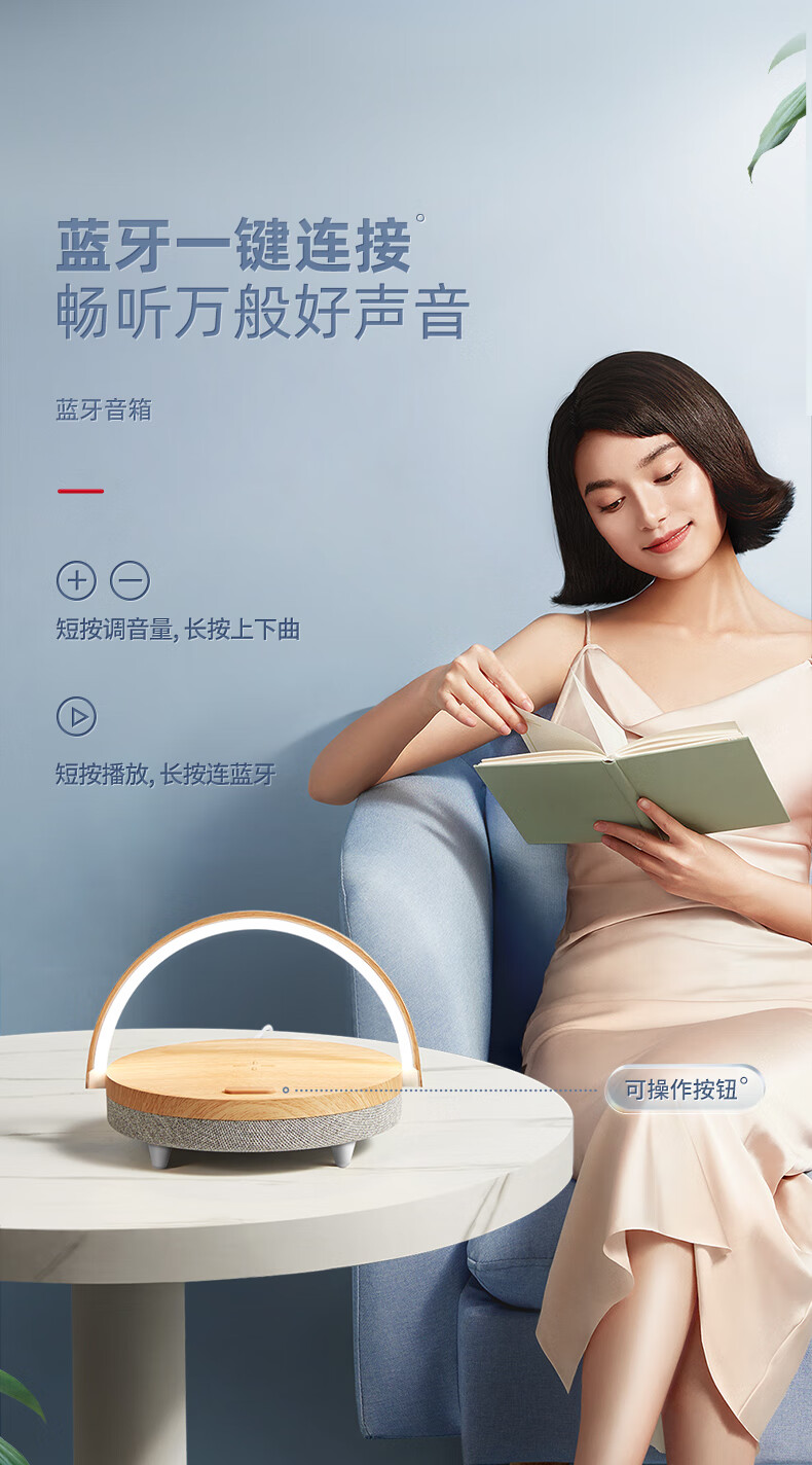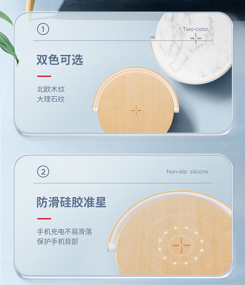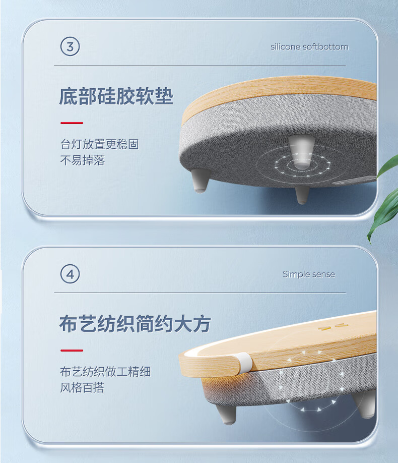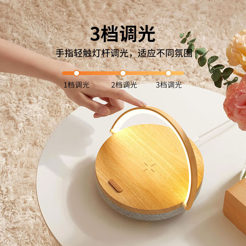 智能无线充电;三档贴心照明模式;180度调节照明角度,手机支架随心放