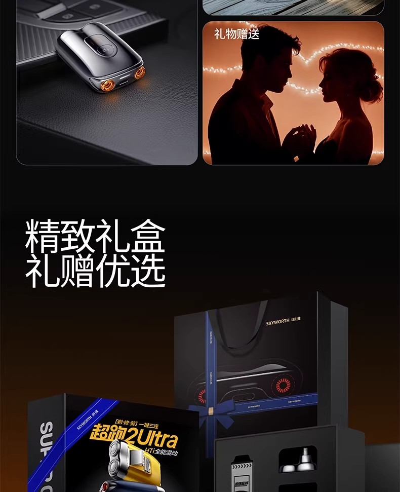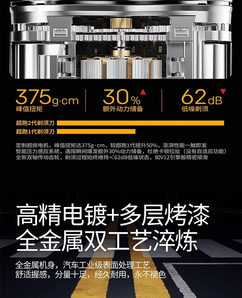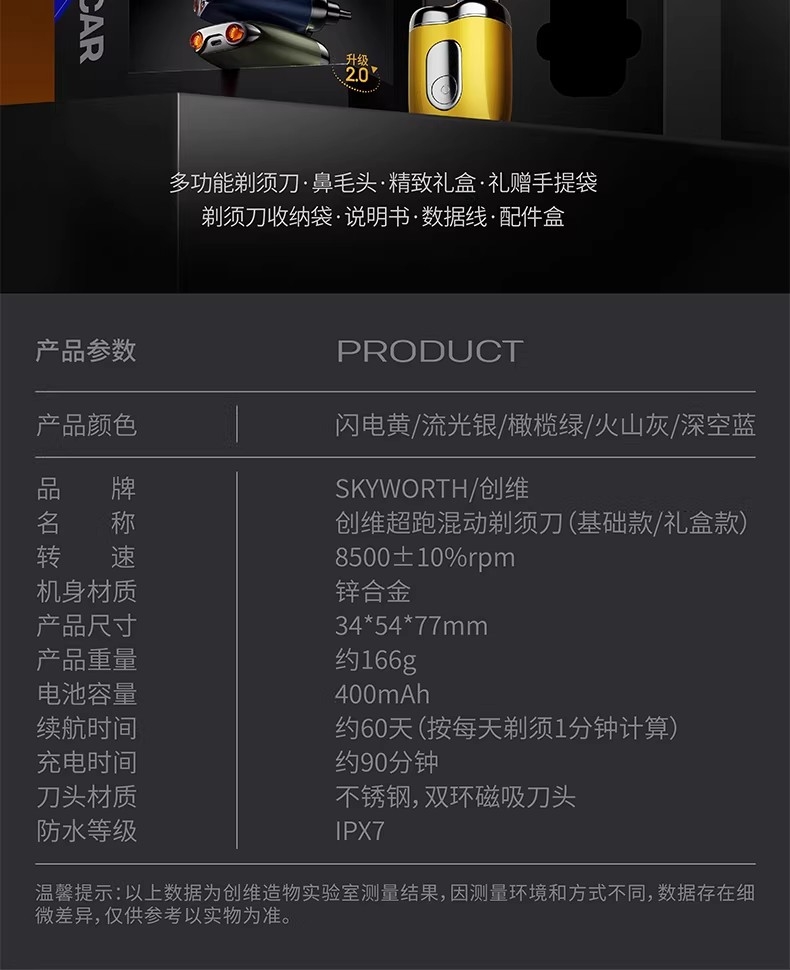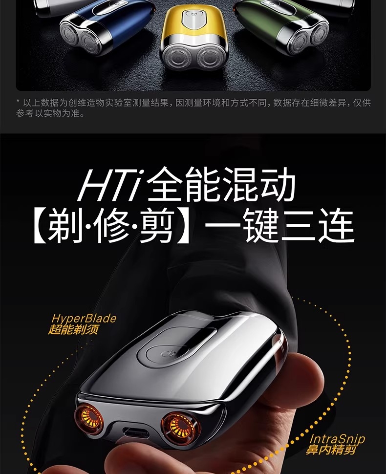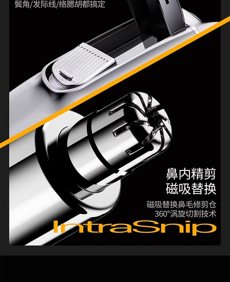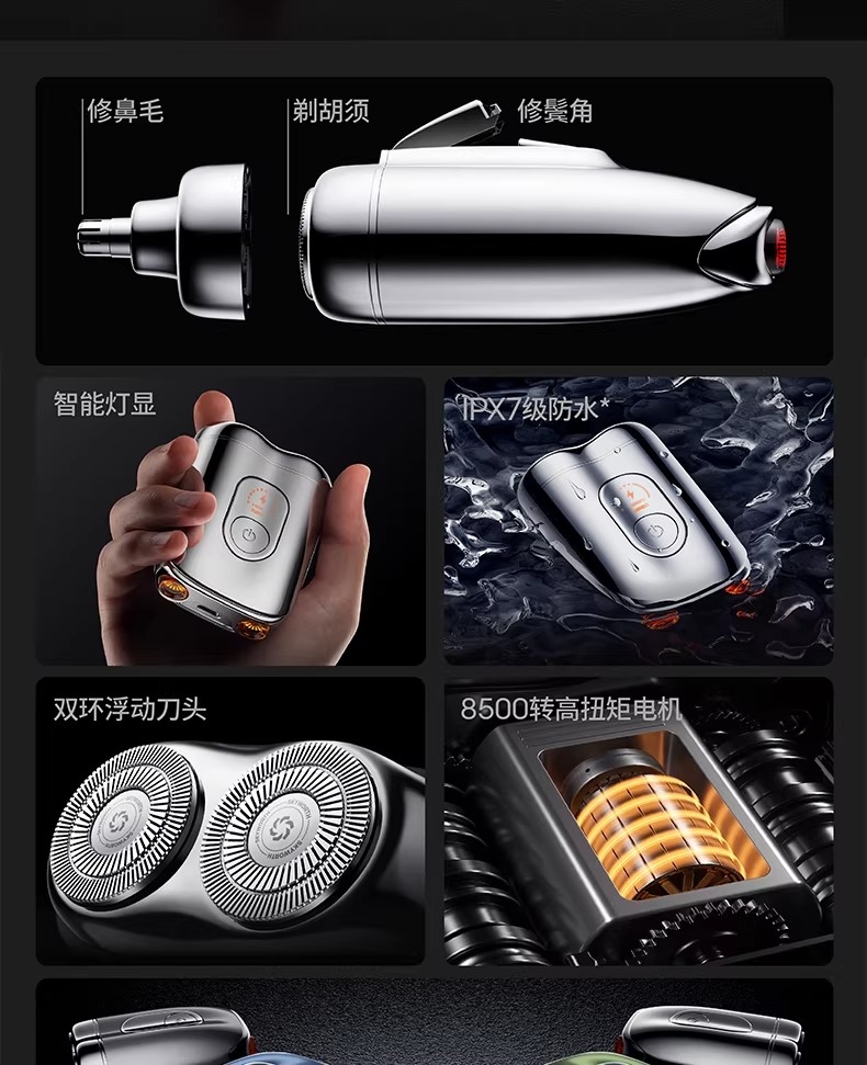 剃须 剃鬓角 鼻毛修剪器三合一 一机多用;浮动刀网,360°捕捉残留胡须 合金机身,镜面光泽;IPX7级防水,干湿双剃 充电一小时,续航60天