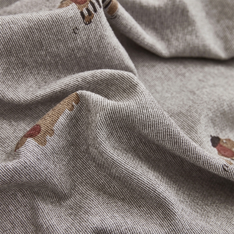 采用独特织造工艺赋予面料云朵般的软糯触感和贴心弹性;A类母婴级安全标准,无刺激更安心;腊肠小狗图案巧妙打破单调