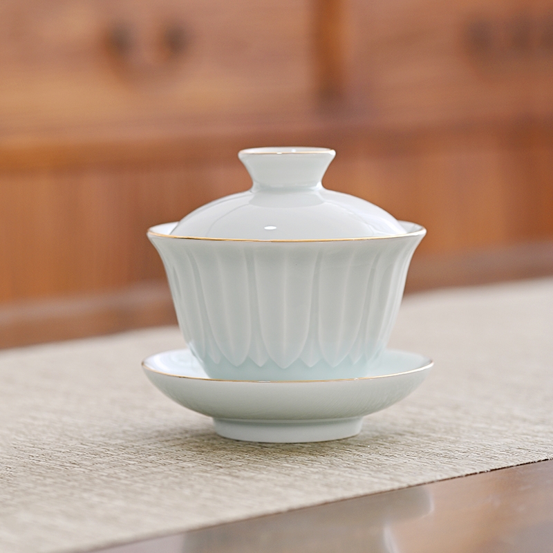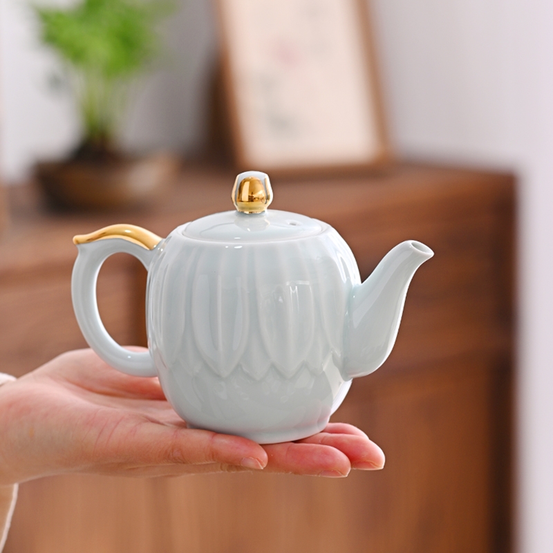 莲花造型,清幽典雅;描金工艺;手工精细修胚