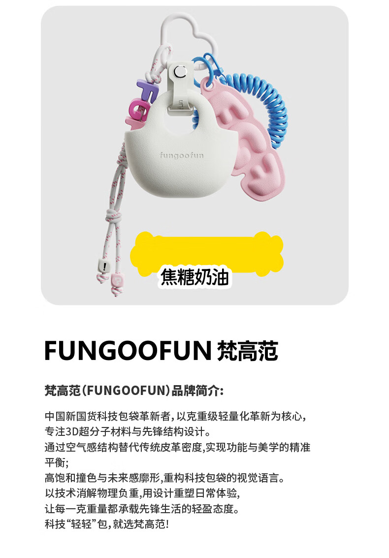 包包形态潮流挂饰;防水耐污易清理;潮酷配色