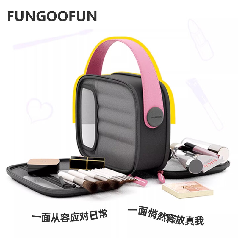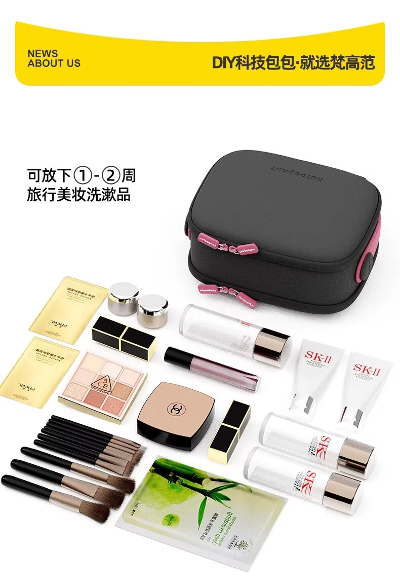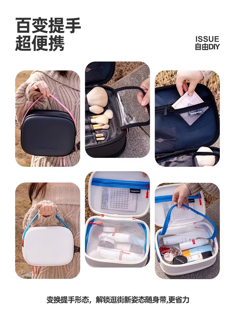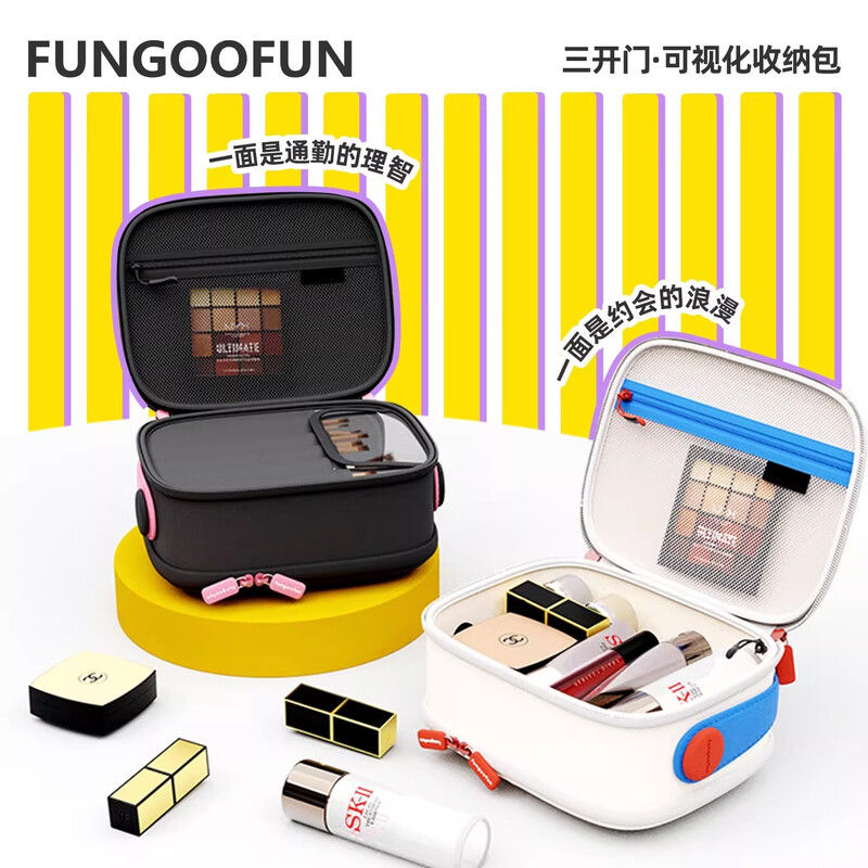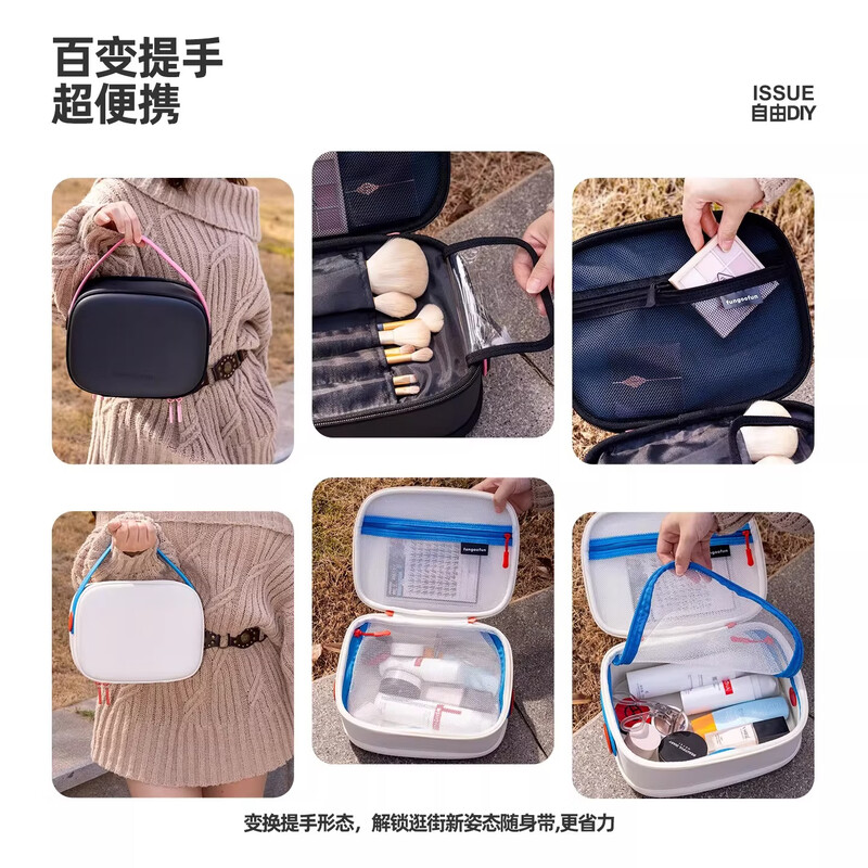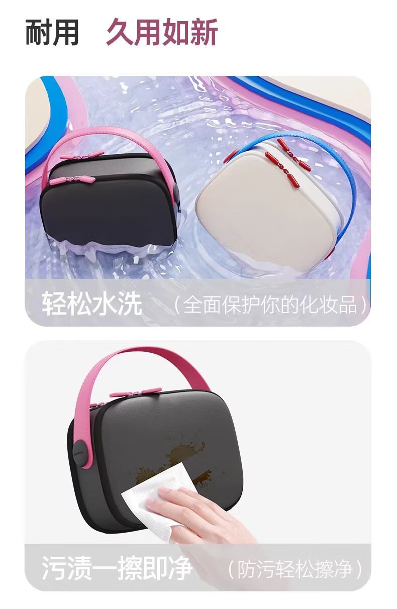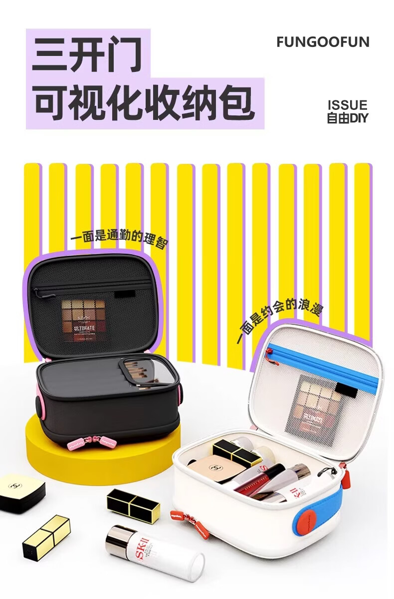 收纳空间增加约30%;双面开合,让所有物品一目了然;优化分区,水乳/彩妆/刷具井井有条