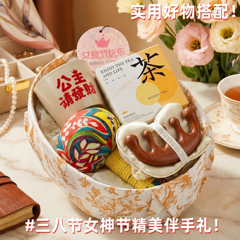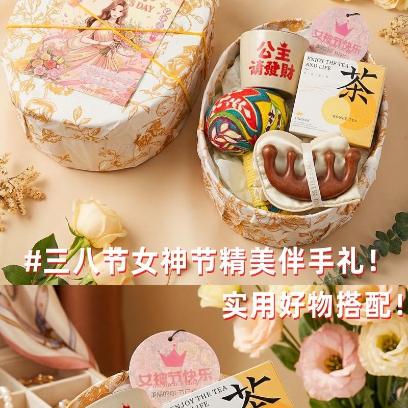 组合:艾草养生锤*1、女神节香片香挂*1、公主请发财陶瓷主人杯*1、桂花乌龙茶3g*3包、女神节公主眼罩+按摩梳组合*1