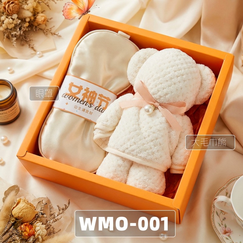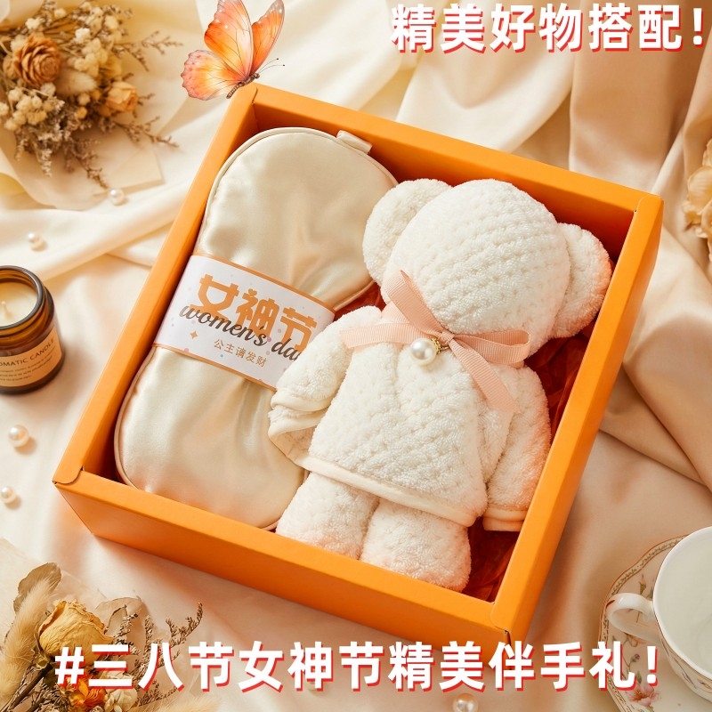 组合:女神节公主眼罩*1、菠萝格纹理创意小熊毛巾75*34CM