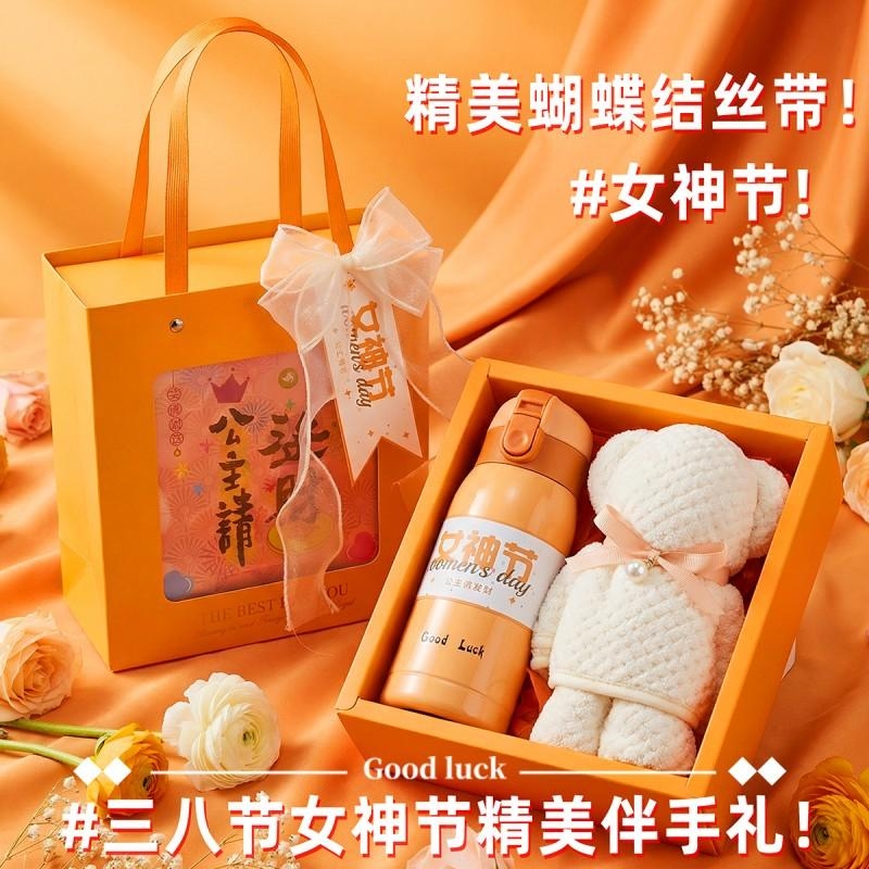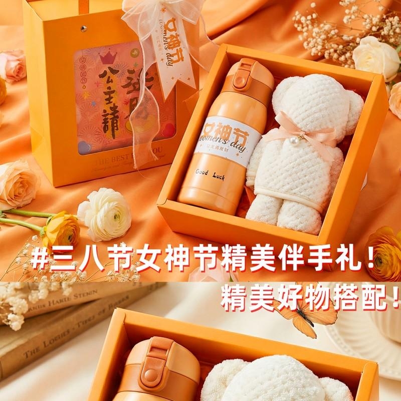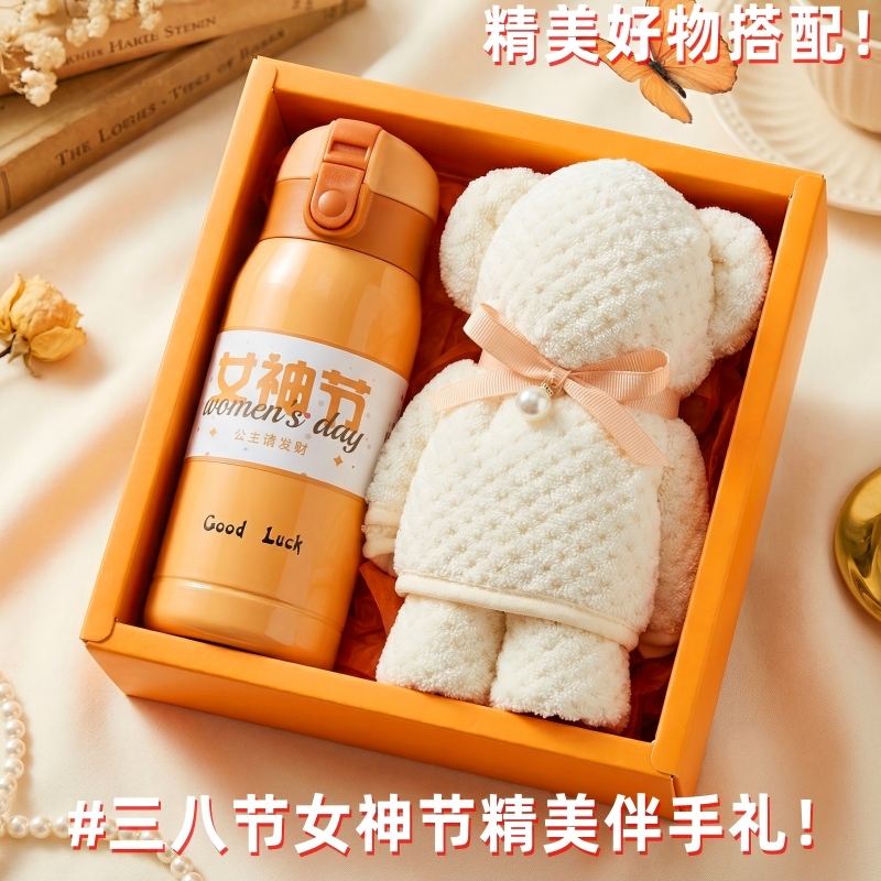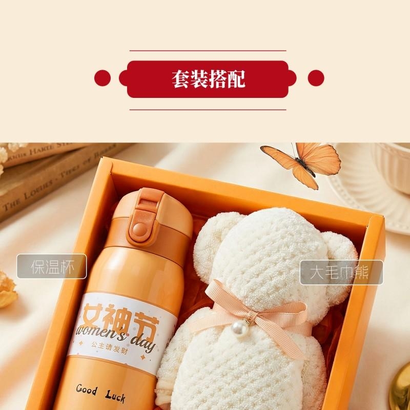 组合:女神节保温杯300ML*1、菠萝格纹理创意小熊毛巾75*34CM