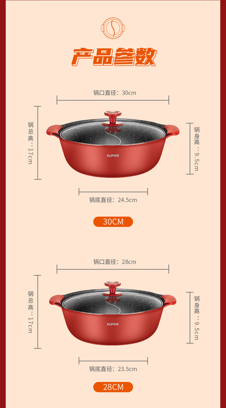 苏泊尔 星星石健康不粘鸳鸯火锅ET28SAP01