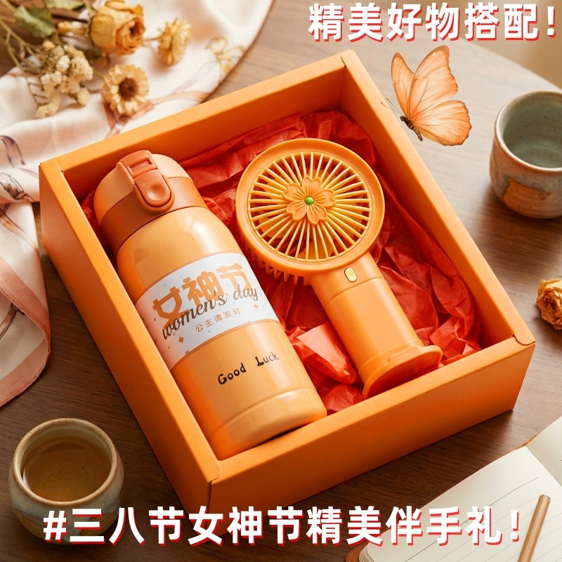 组合:可调节3档小风扇*1、女神节保温杯300ML*1