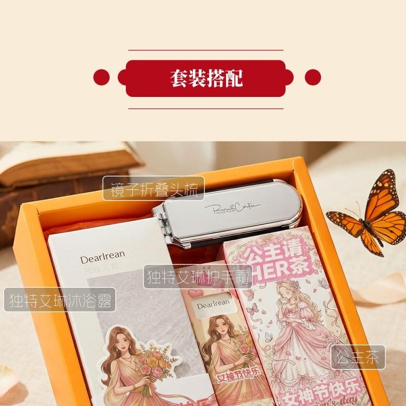 组合:镜子气囊头梳*1、公主请喝茶8g*2袋、独特艾琳香氛护手霜35克*1、独特艾琳香氛沐浴露350ML*1