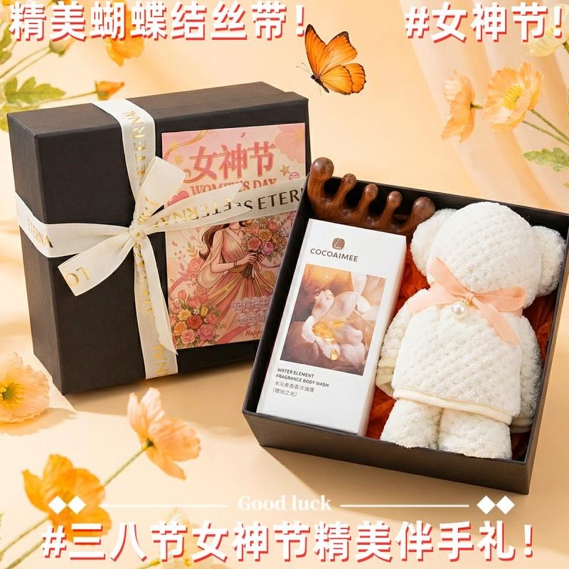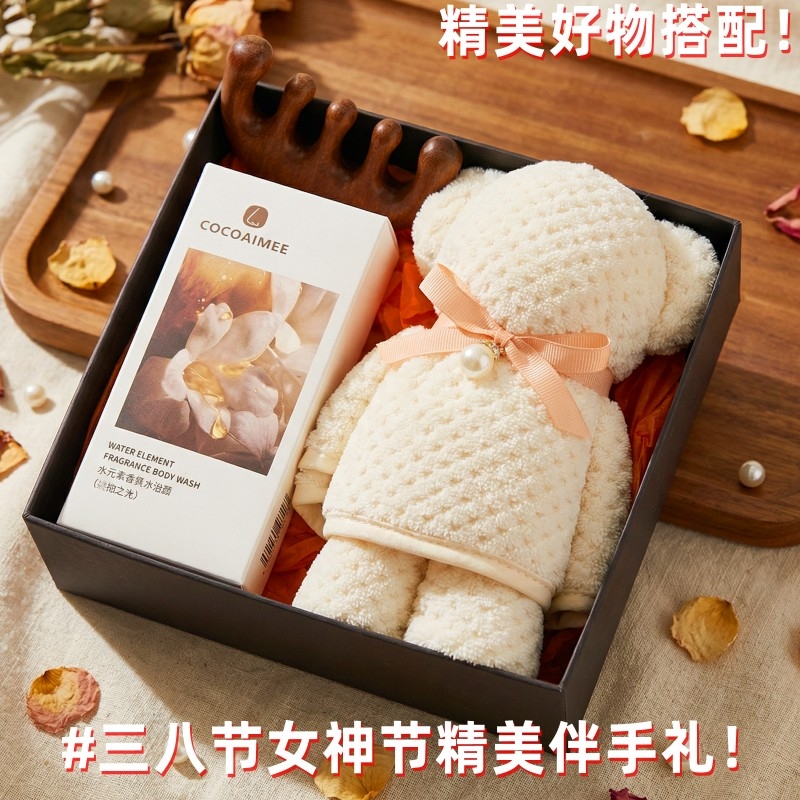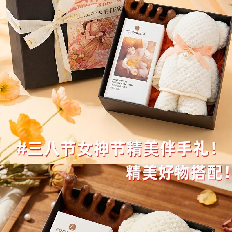 组合:经络按摩梳*1、cocoaimee香氛沐浴露188ML*1、菠萝格纹理创意小熊毛巾75*34CM