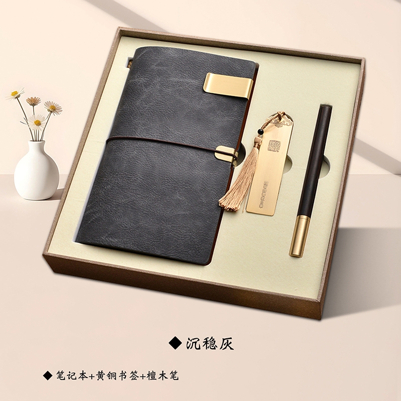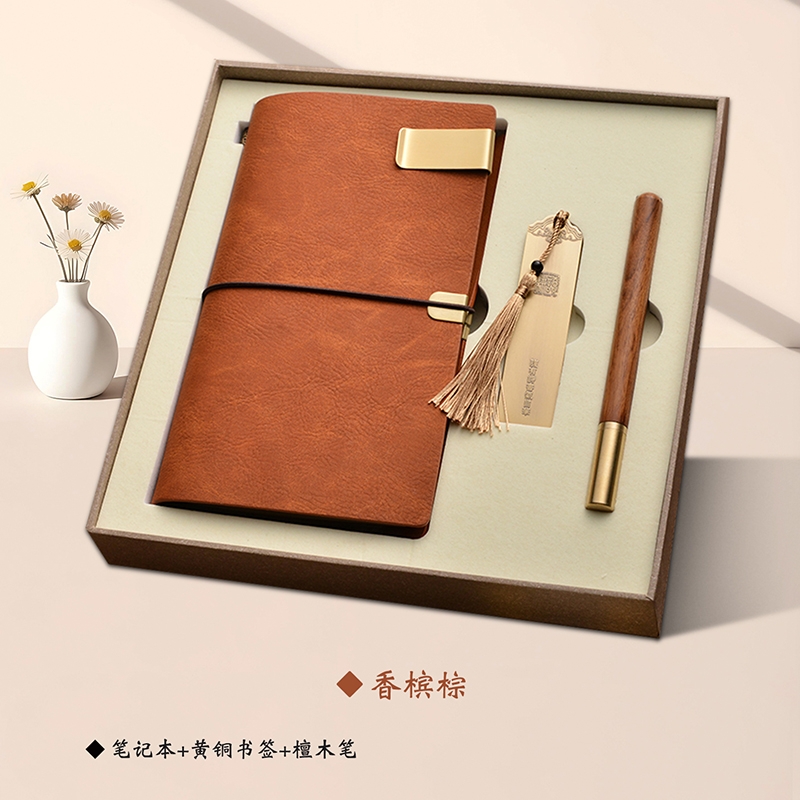 笔记本+黄铜书签+檀木笔: