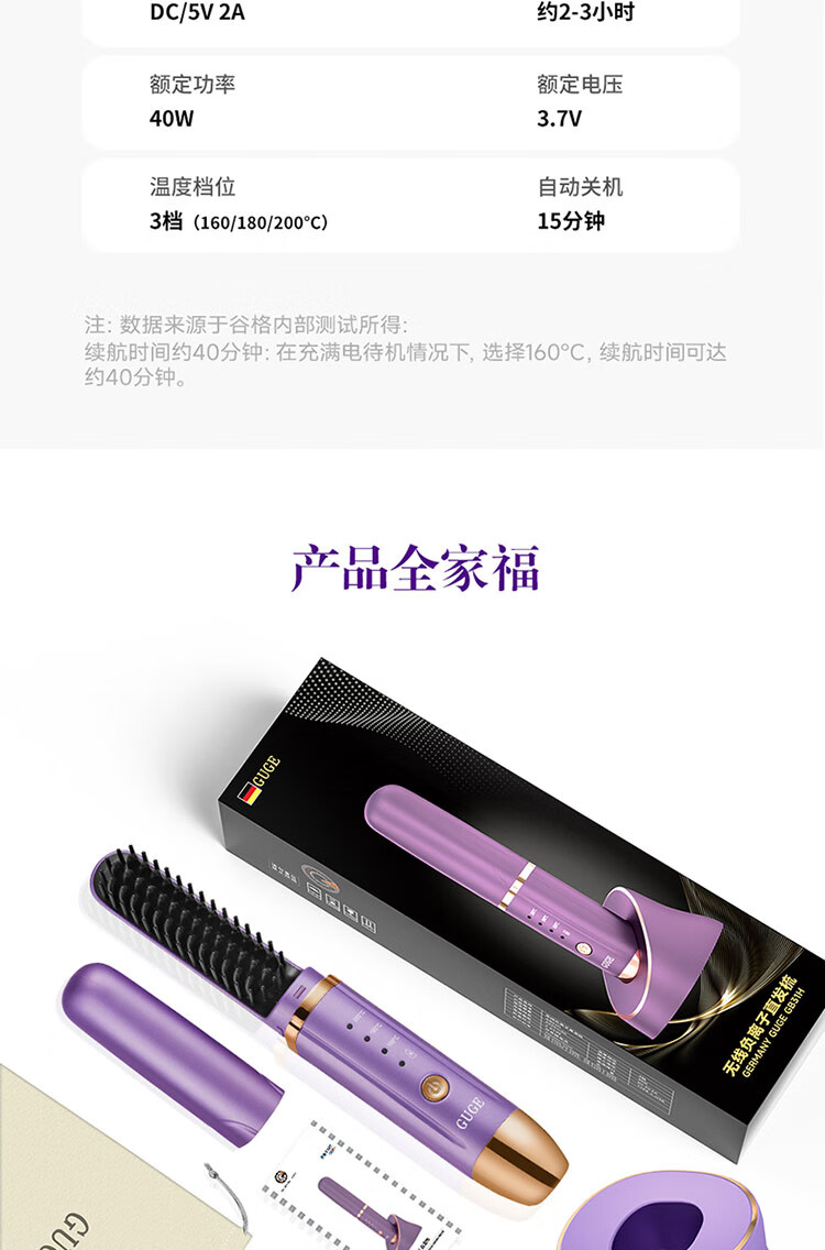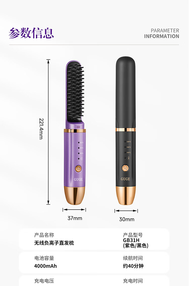 谷格 无线负离子直发梳GB31H