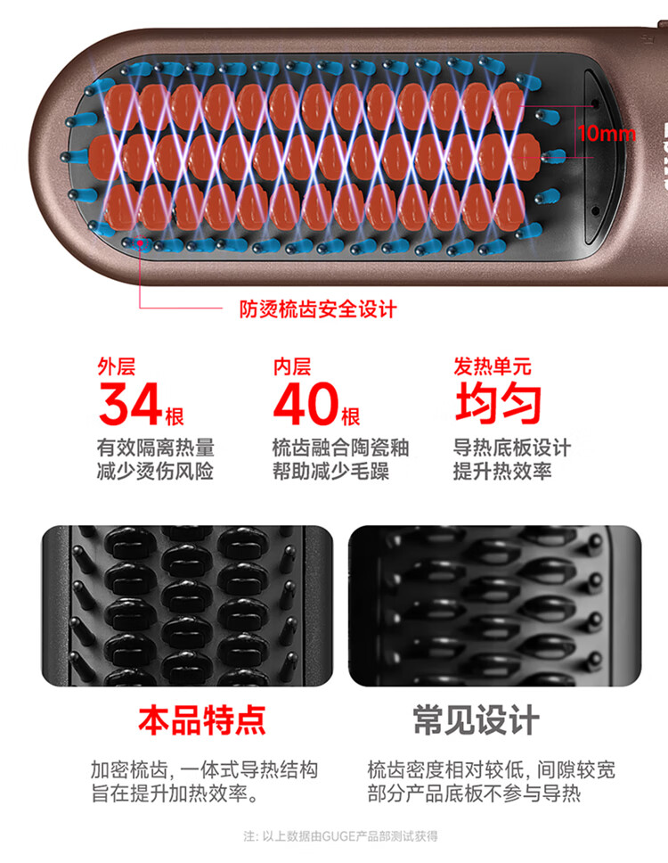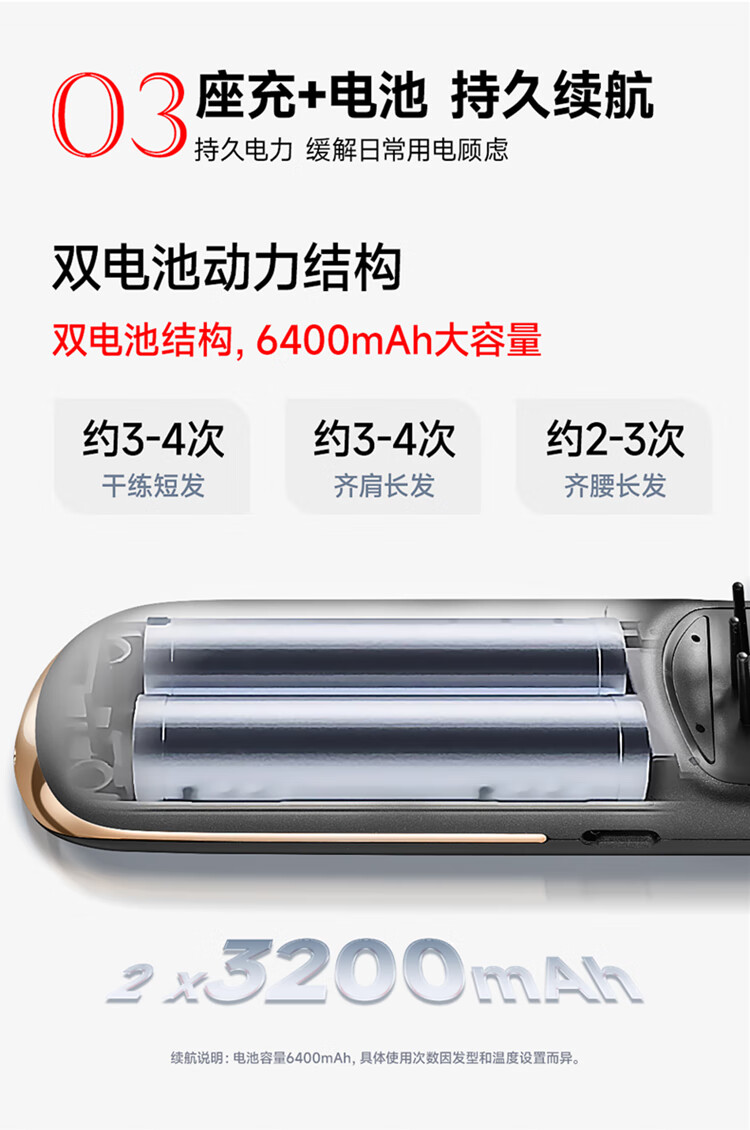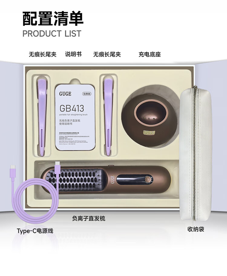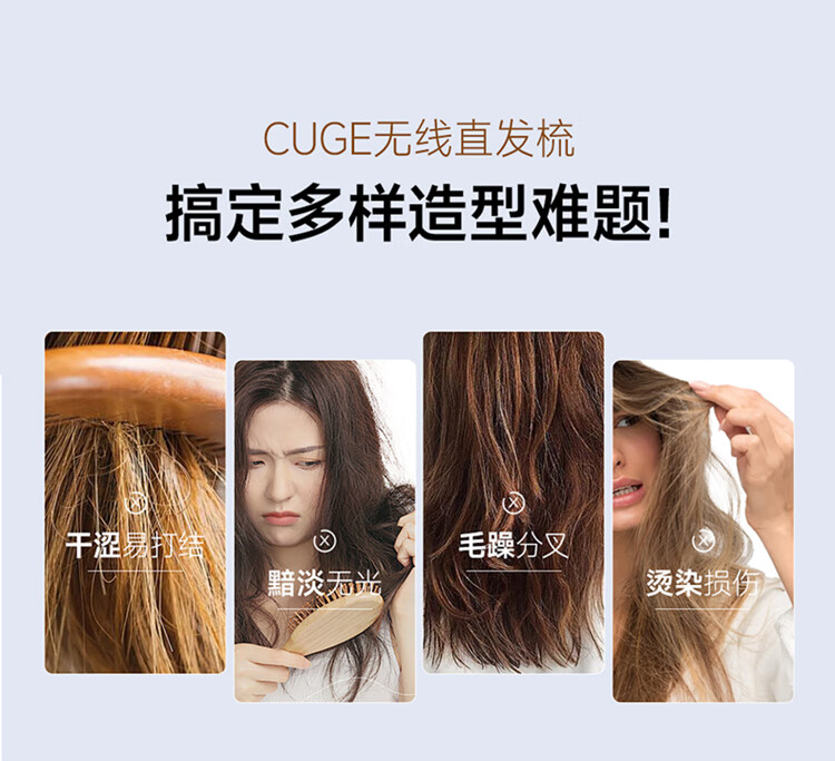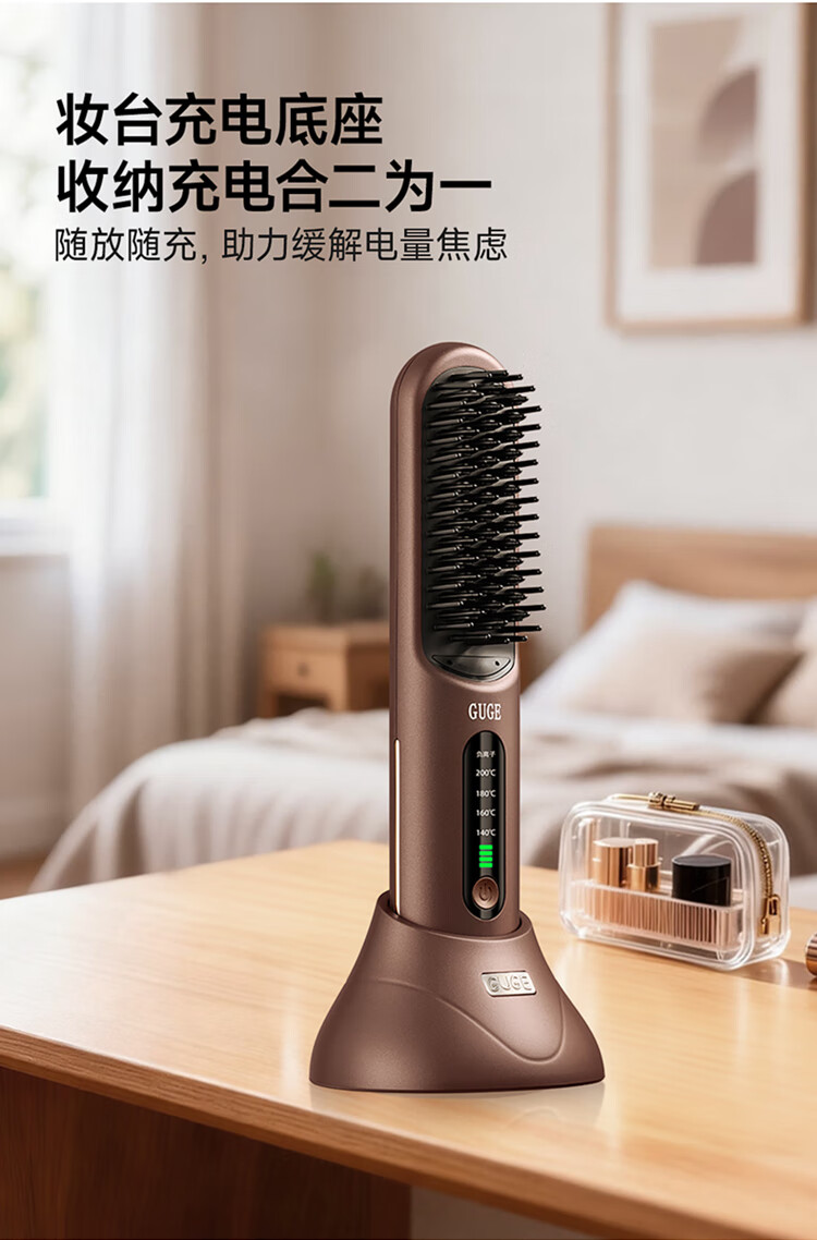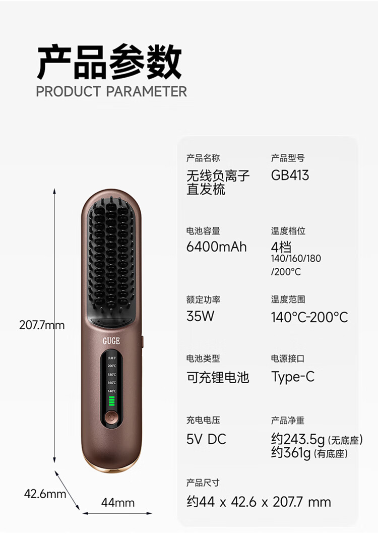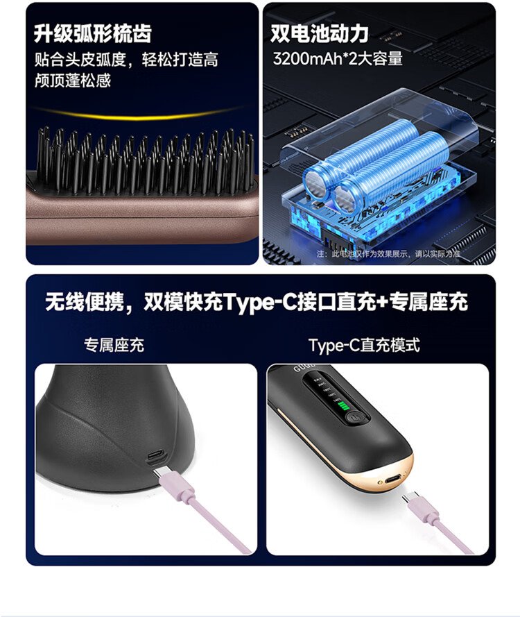 5.67亿负离子直发梳新升级弧形梳齿。;释放负离子 帮助秀发柔亮顺滑无线都能用 ;4档温度选择满足多种发质需求。