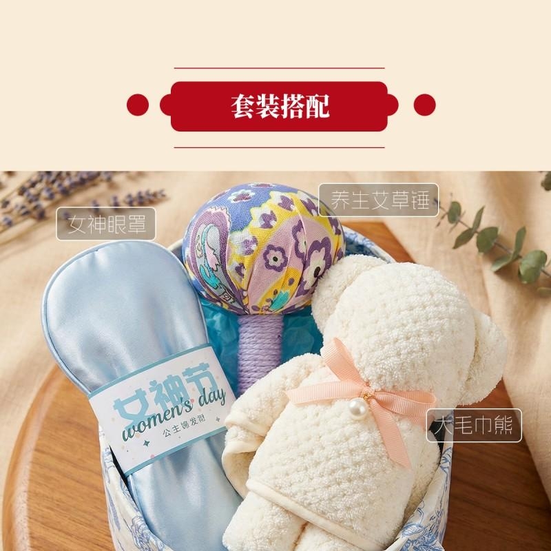 组合:女神节公主眼罩*1、公主艾草养生锤*1、菠萝格纹理创意小熊毛巾75*34CM