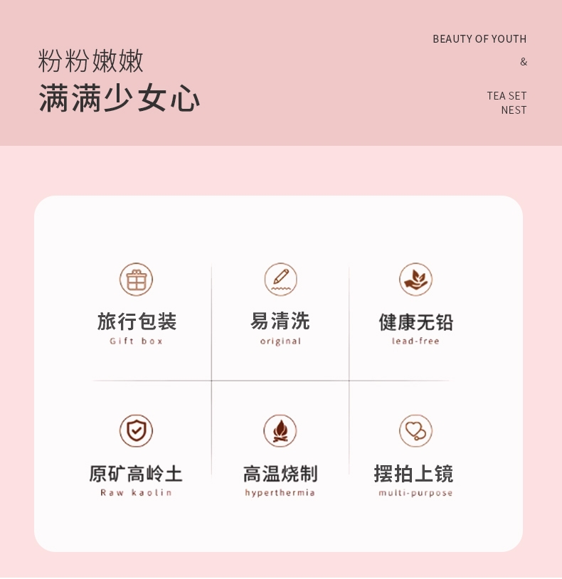 粉-芳华6件套茶具套装